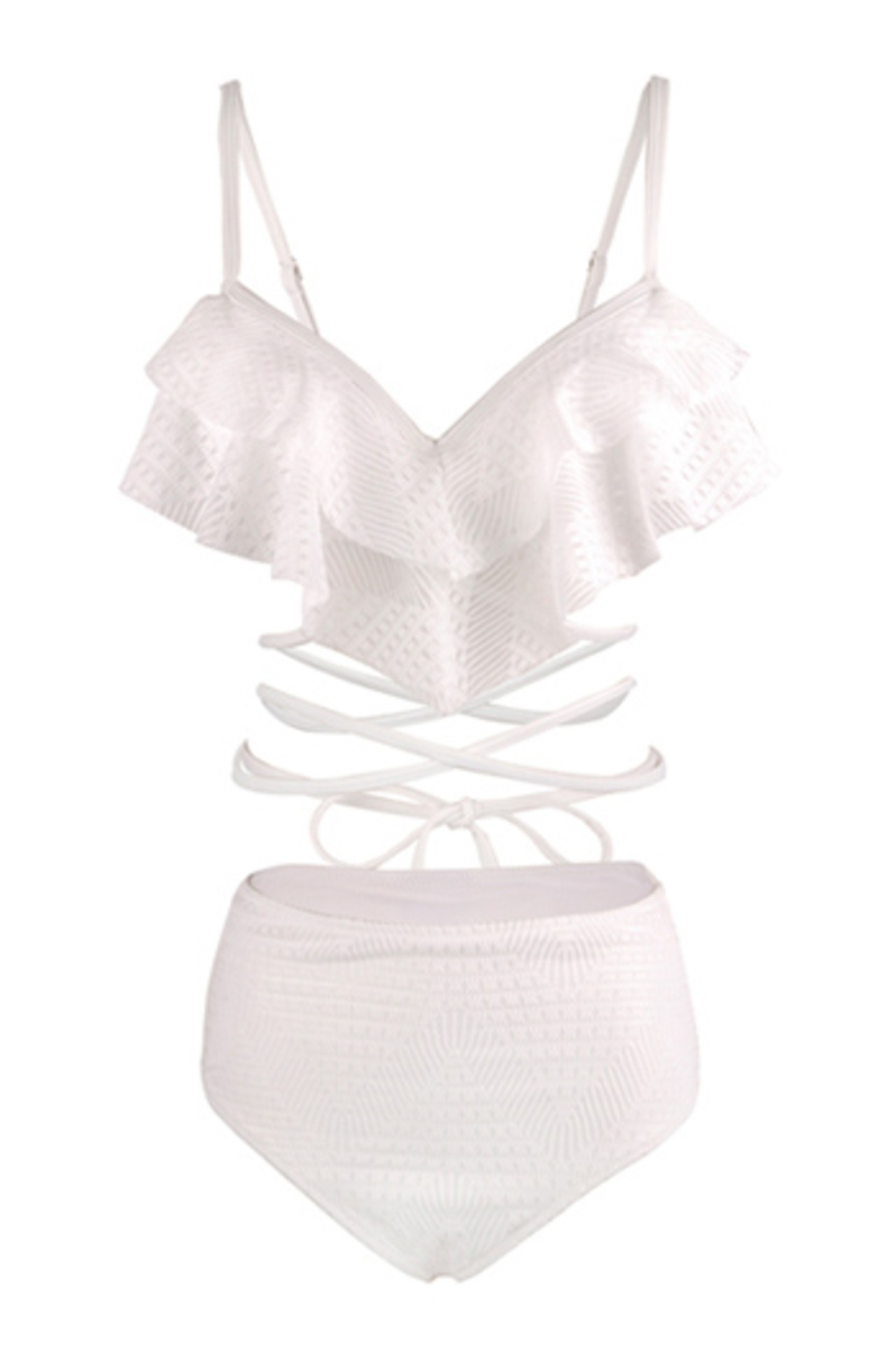 水着 ビキニ セクシービキニ ノンワイヤー 紐 小胸 レースアップ フリル ハイウエスト 胸元 谷間 盛れる 美ヒップ 美尻 美バスト 美胸 大人可愛い きれいめ セクシー sexy シンプル カジュアル ナチュラル 華やか 大人 大人っぽい おしゃれ レトロ 主役級 存在感 女っぽ キュート 個性的 スタイリッシュ 無地 レディース 女性用 女の子 夏 海 ビーチ プール リゾート 旅行 脚長 スタイルアップ 美スタイル モテ 白 ホワイト