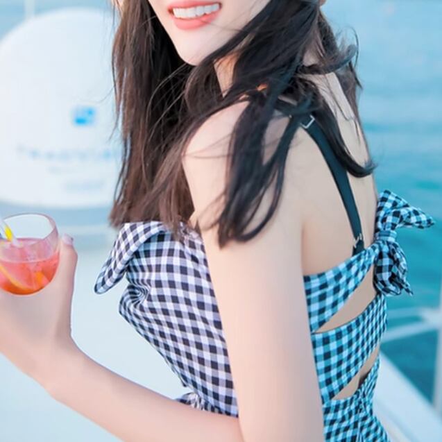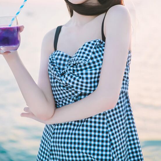 ギンガムチェックが爽やかなタンキニタイプの水着です。