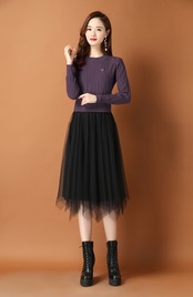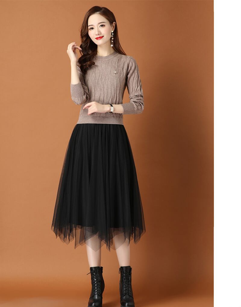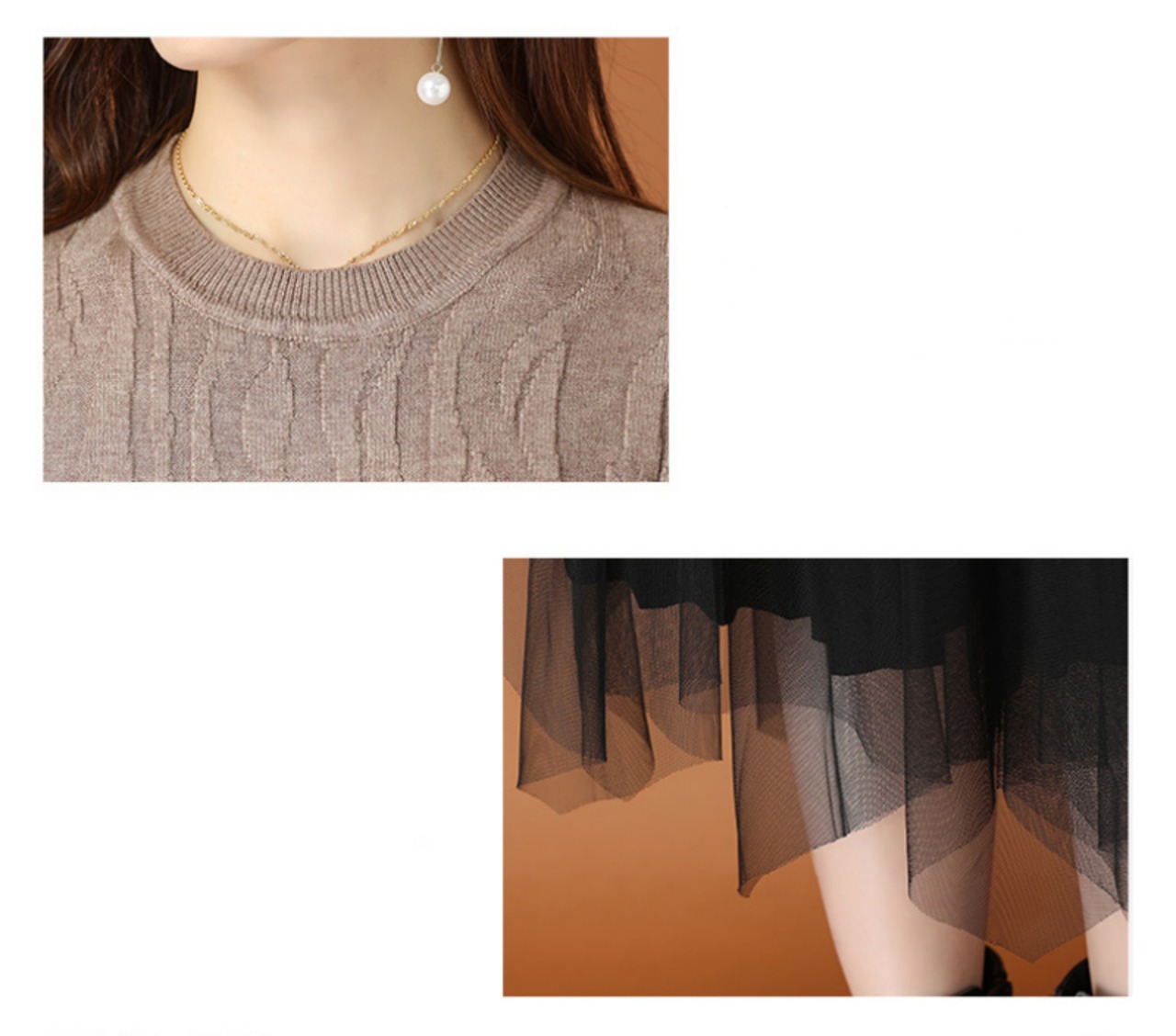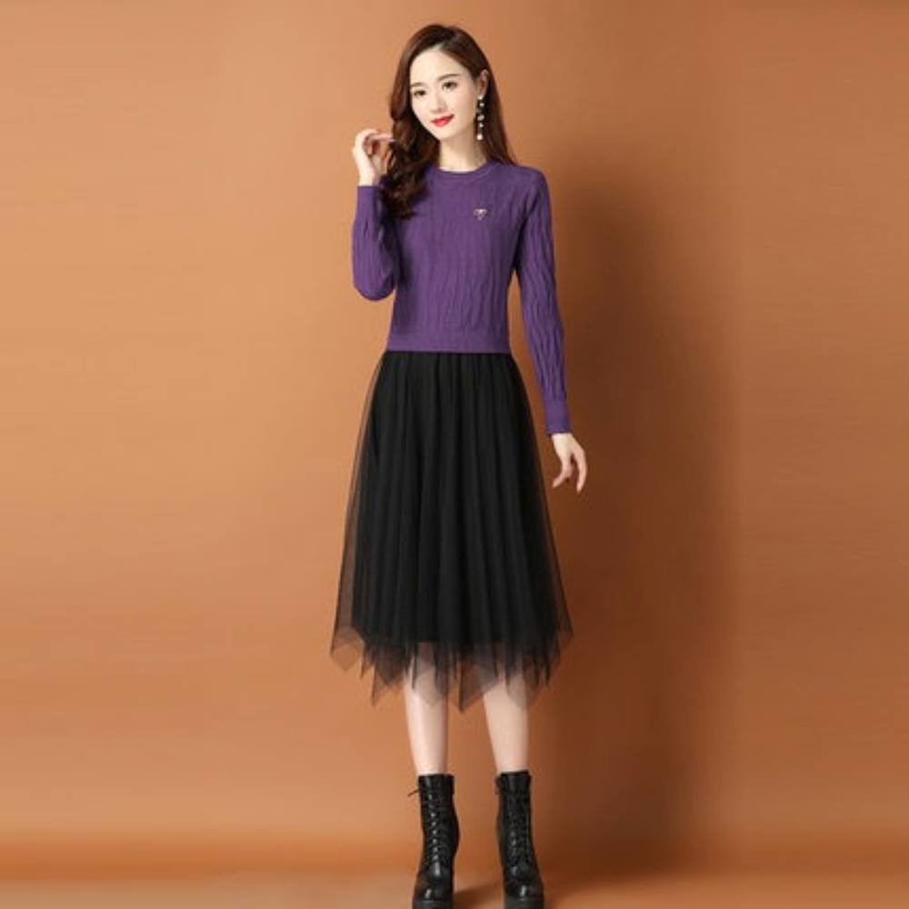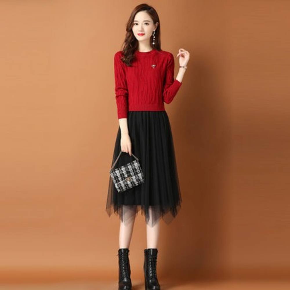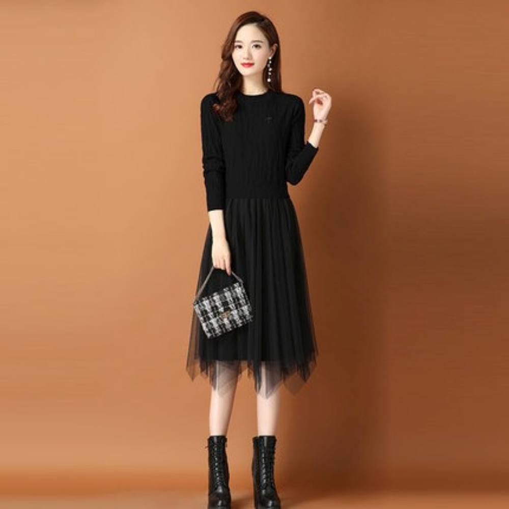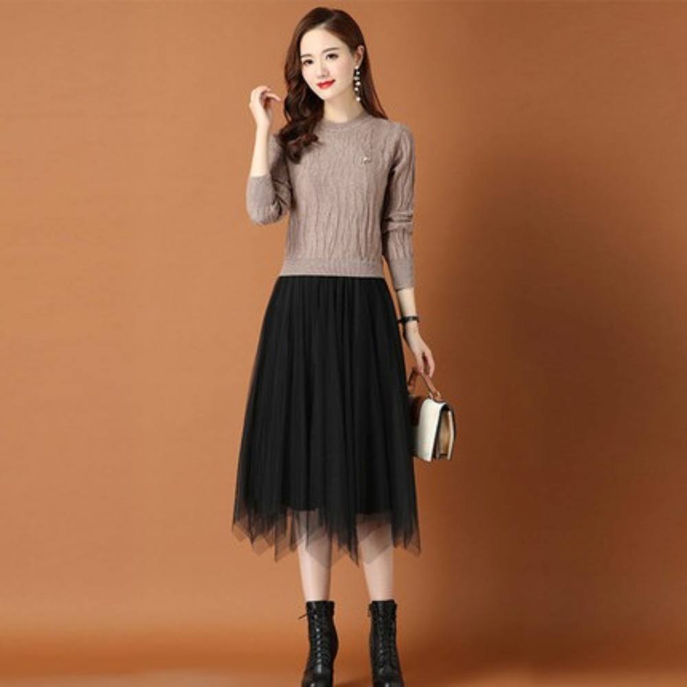 ワンピース フレアワンピース 膝下 ミモレ ミモレ丈 袖あり 長袖 クルーネック フレア Aライン 切り替えデザイン チュール ハイウエスト 透け感 シースルー ポリエステル ニット アクリル かわいい 大人可愛い きれいめ シンプル カジュアル 大人 上品 おしゃれ お洒落 キュート ガーリー エレガント モダン とろみ感 抜け感 フェミニン ロマンチック 無地 秋 冬 デート お出かけ 女子会 休日 着回し 普段使い 楽ちん モテ 体系カバー 美脚 脚長 プレゼント ギフト 定番 プチプラ 安い