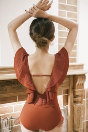 大き目フリルが大人可愛いワンピースタイプの水着です。