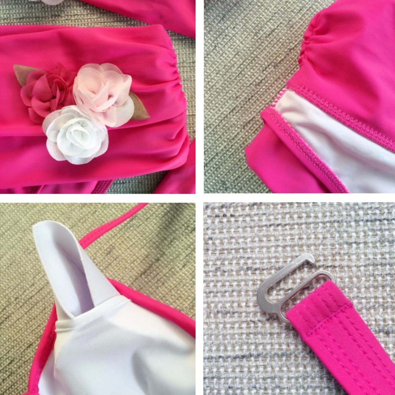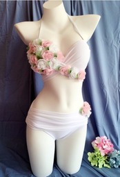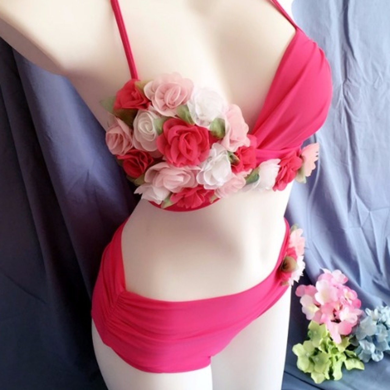 胸元のお花がガーリーなホルターネックビキニ上下セットです。