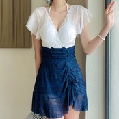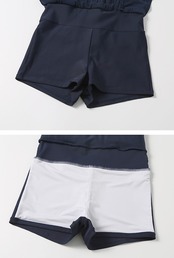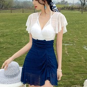 バイカラーがおしゃれなワンピースタイプの水着です。
