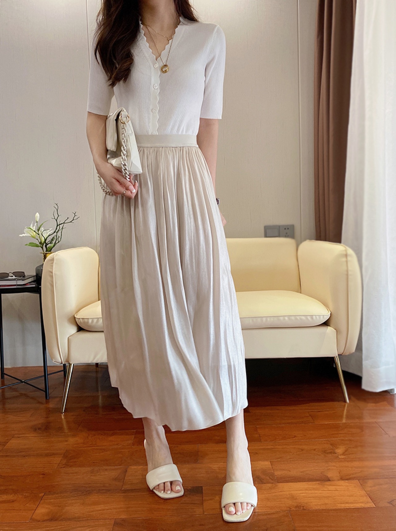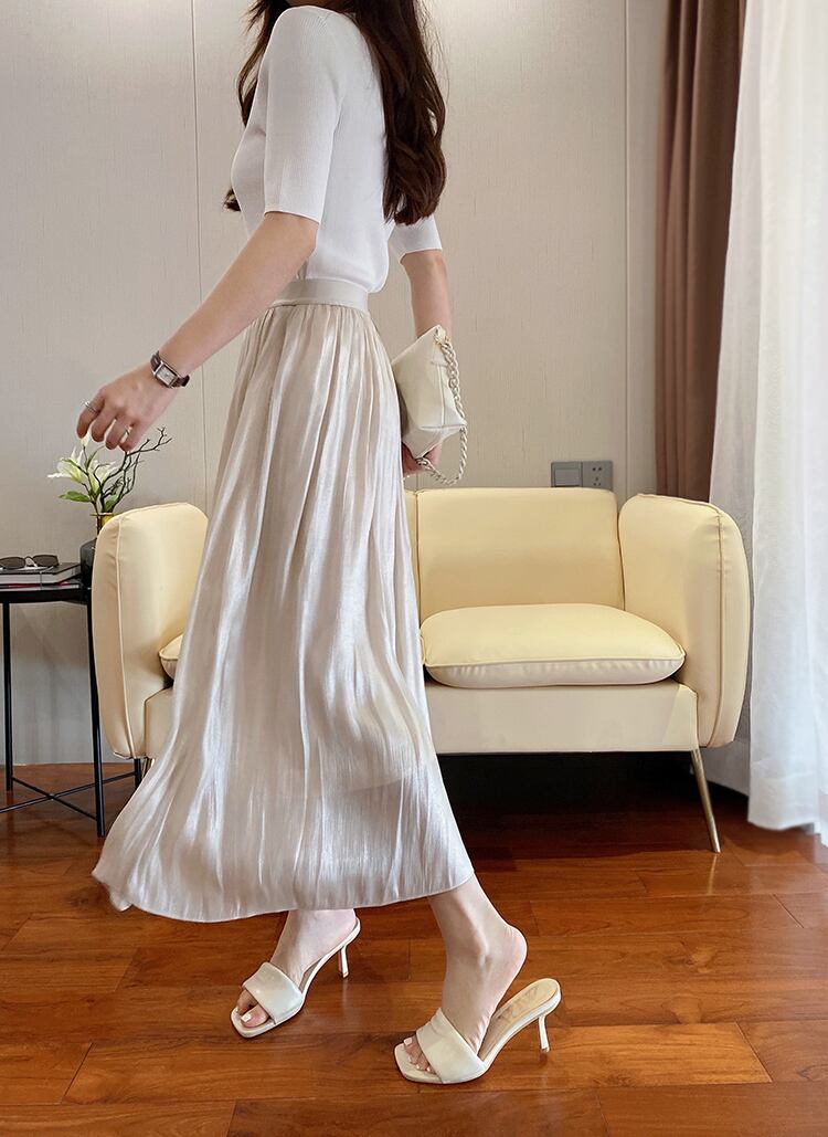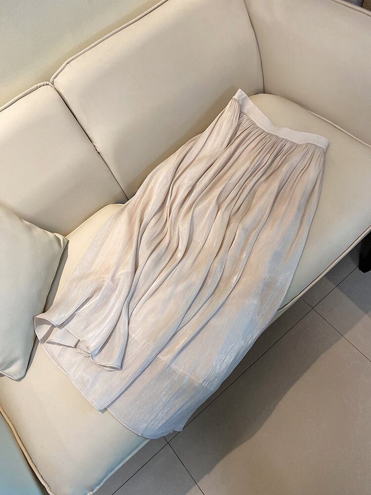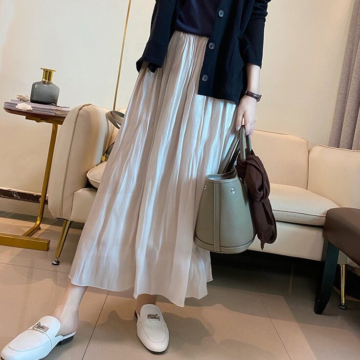 サテン風生地が大人可愛いアンクル丈スカートです。