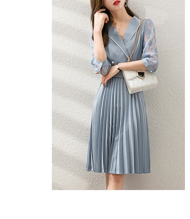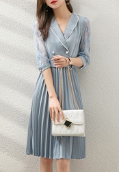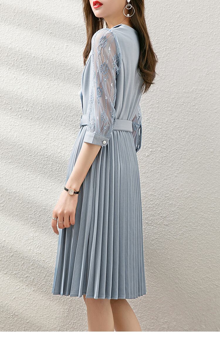 花柄レースの袖とプリーツスカートがロマンチックでかわいい、ミディ丈ワンピースです。