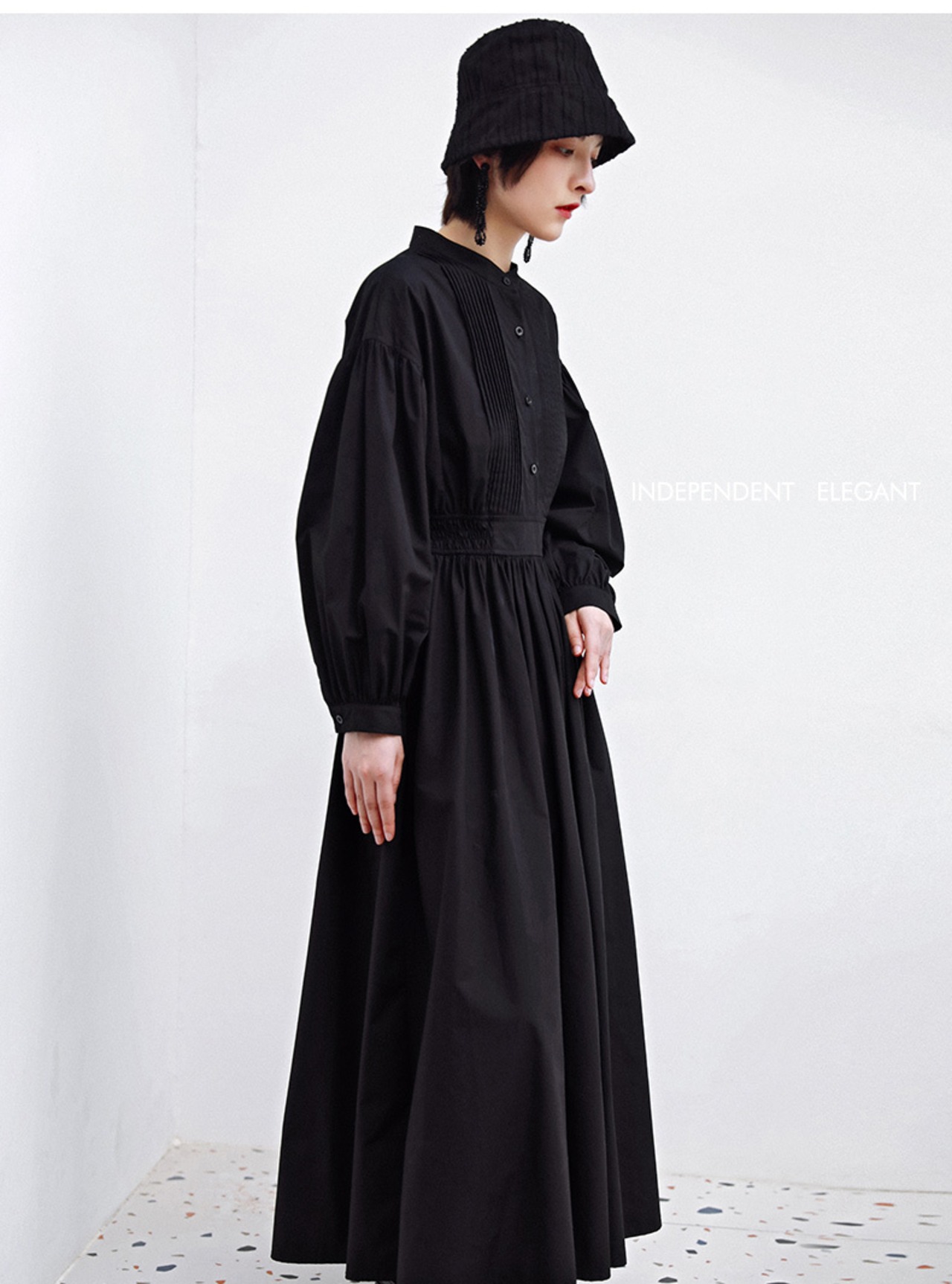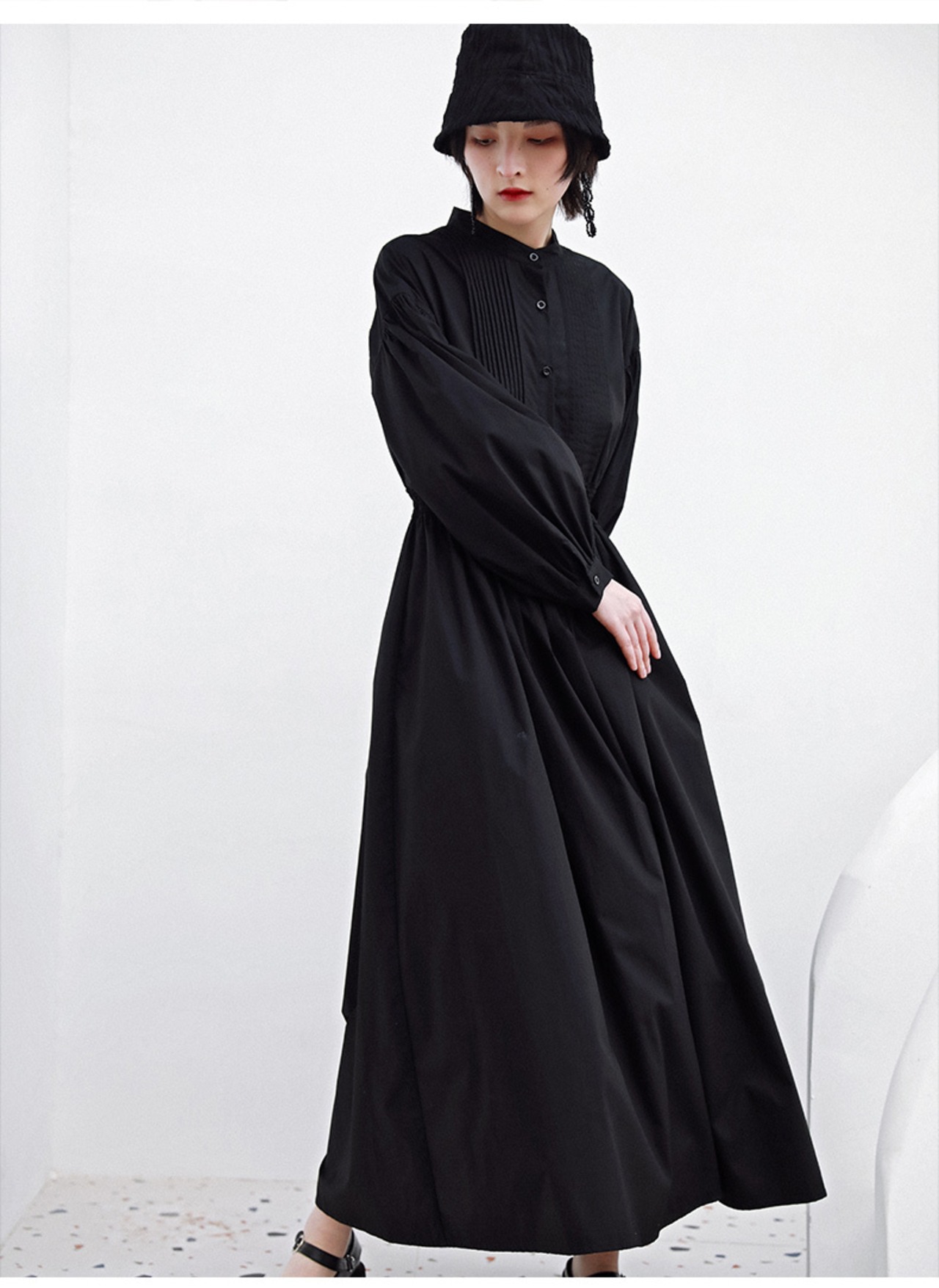 ワンピース シャツワンピース フレアワンピース ロング ロング丈 マキシ マキシ丈 袖あり 長袖 ボリューム袖 パフスリーブ スタンドカラー 立ち襟 フレア Aライン ウエストマーク ハイウエスト 大人可愛い きれいめ シンプル カジュアル 大人 上品 おしゃれ お洒落 かっこいい 大人女子 こなれ感 クール モード系 エレガント モダン フェミニン クラシカル 無地 春 秋 冬 デート お出かけ 着回し 普段使い 楽ちん モテ 体系カバー 美脚 脚長 プレゼント ギフト 定番 ゆったり ゆる