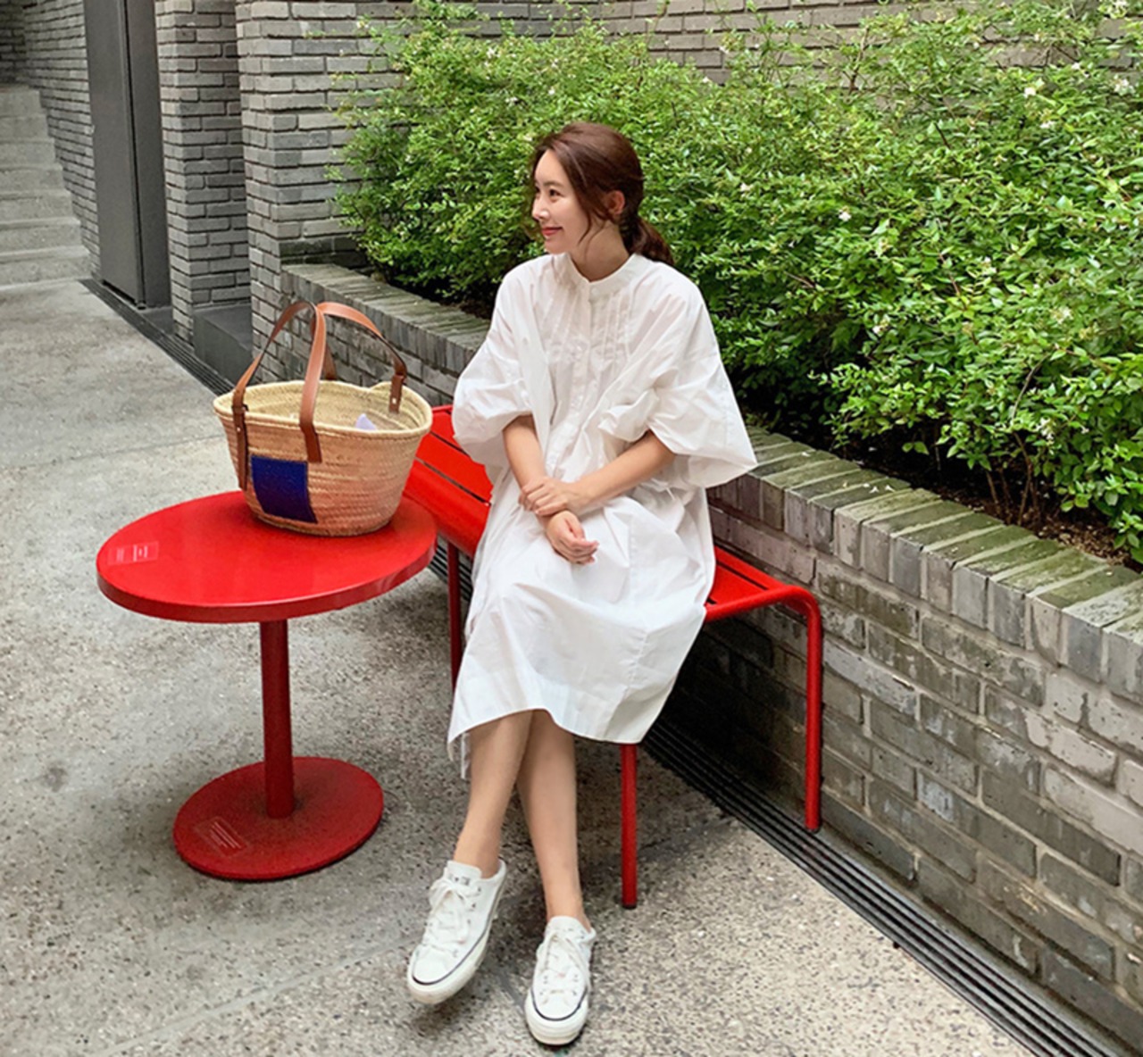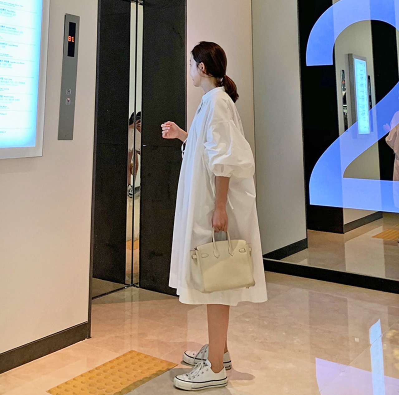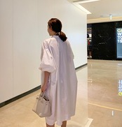 ワンピース シャツワンピース 膝下 ミモレ ミモレ丈 ロング ロング丈 袖あり 七分袖 ボリューム袖 ドルマンスリーブ パフスリーブ ドロップショルダー バットスリーブ クルーネック ヘンリーネック スタンドカラー 立ち襟 ワイド Aライン タック 綿 ポリエステル コットン 大人可愛い きれいめ シンプル カジュアル 大人 おしゃれ お洒落 大人女子 こなれ感 ラフ キュート ルーズ 個性的 フェミニン 無地 ママ マタニティ デート お出かけ 着回し 普段使い 楽ちん 体系カバー ゆったり ゆる