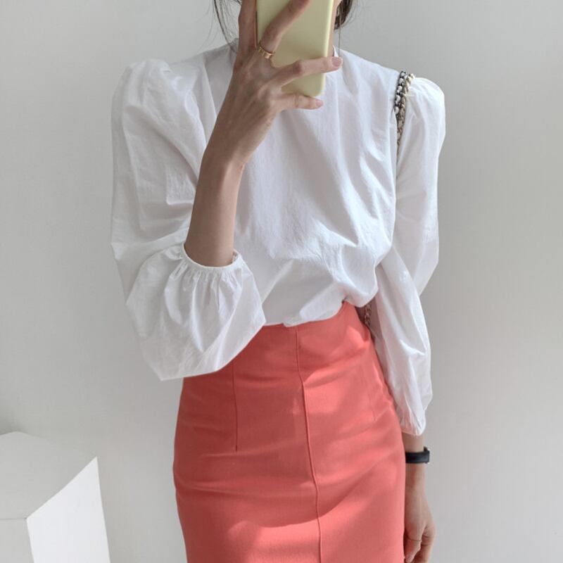 トップス ブラウス 袖あり 長袖 ラウンドネック バックシャン バックコンシャス 大人可愛い きれいめ シンプル 大人 上品 おしゃれ お洒落 大人女子 こなれ感 ラブリー セクシー エレガント 主役級 存在感 無地 春 夏 秋 冬 オールシーズン シーズンレス 2022 2023 10代 20代 30代 レディース 女性用 デート お出かけ 女子会 休日 パーティー イベント リゾート フリーサイズ 白 ホワイト 黒 ブラック