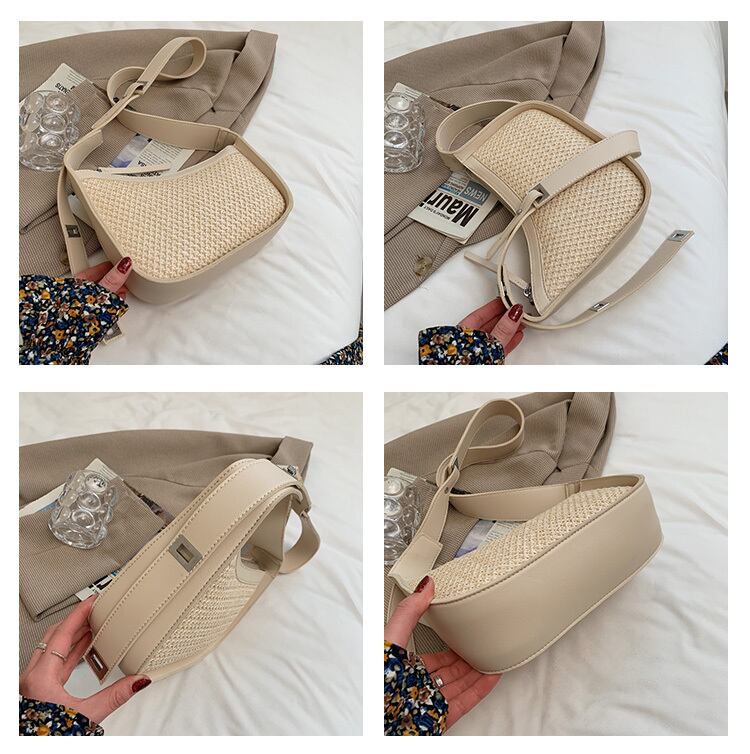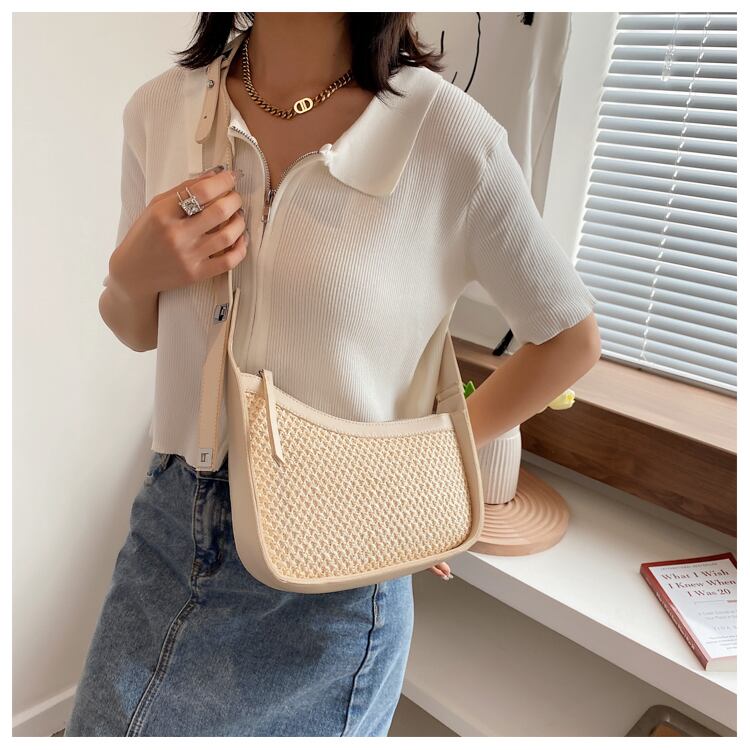 大人っぽく爽やかな印象の草編みショルダーバッグです。