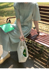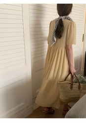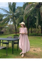 パステルカラーが可愛らしいロング丈ワンピースです。
