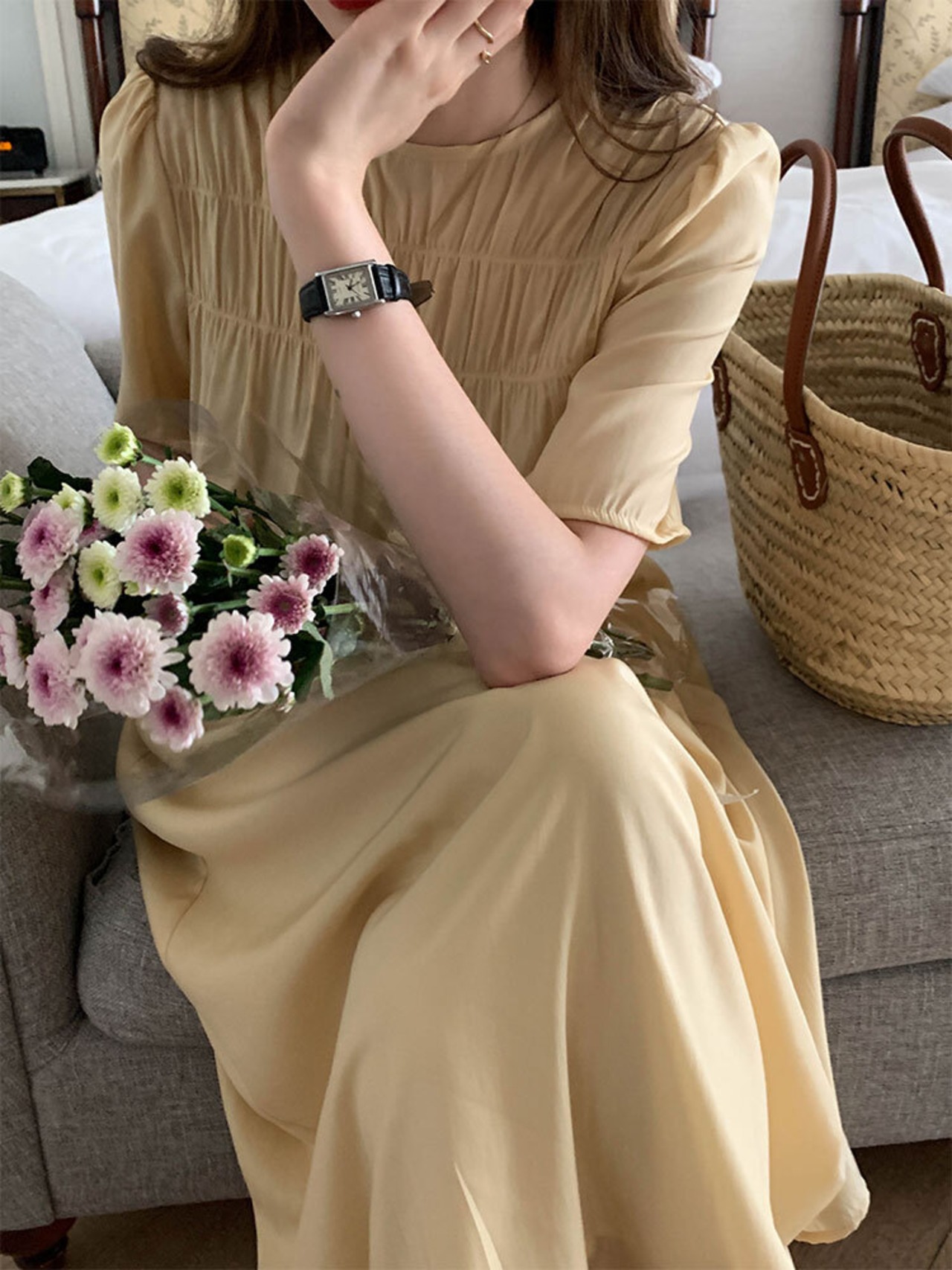 ワンピース フレアワンピース ティアードワンピース ショート丈 ロング ロング丈 マキシ マキシ丈 袖あり 半袖 ラウンドネック ワイド 伸縮性 大人可愛い シンプル カジュアル 大人 おしゃれ お洒落 大人女子 こなれ感 ラフ ラブリー キュート ガーリー とろみ感 抜け感 無地 春 夏 2022 2023 10代 20代 30代 40代 50代 60代 レディース 女性用 キッズ 女の子 お出かけ 休日 リゾート 旅行 海 ガーデン 体系カバー フリーサイズ 緑 グリーン 黄色 イエロー ピンク