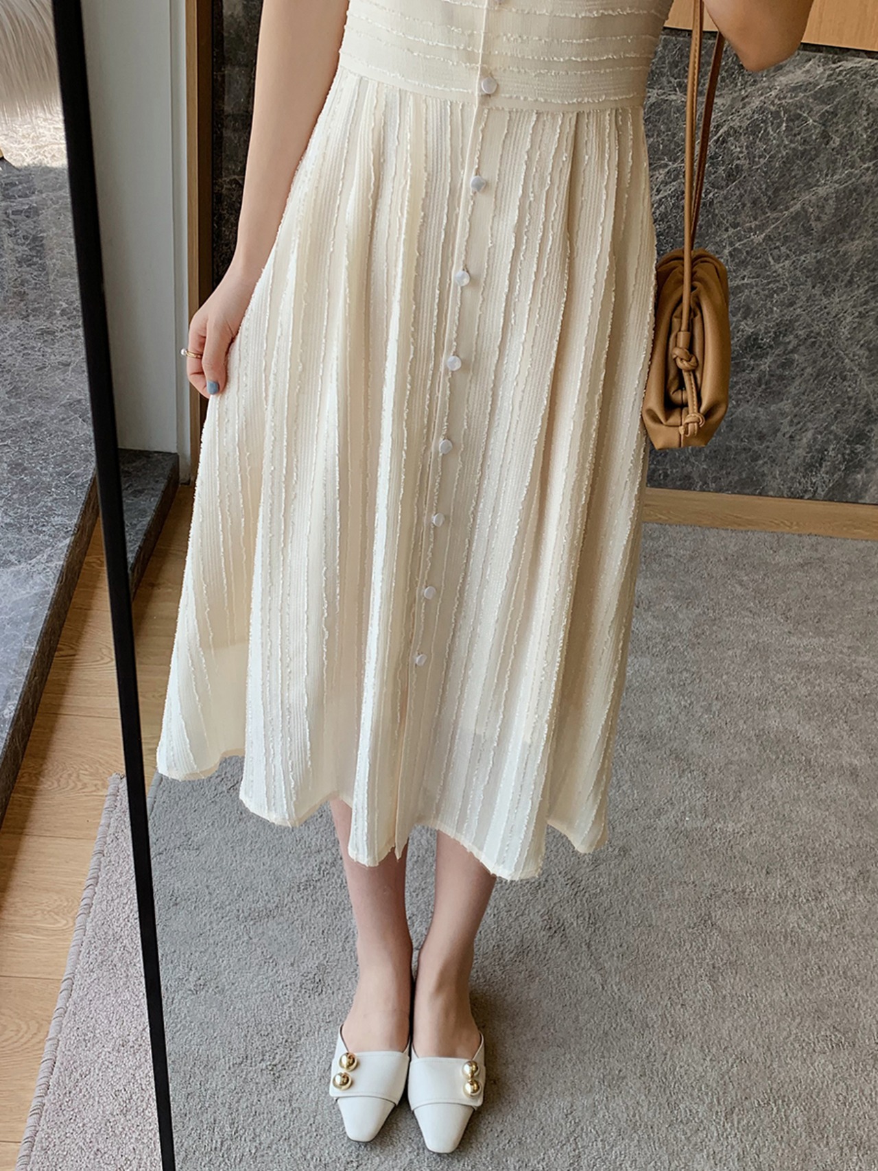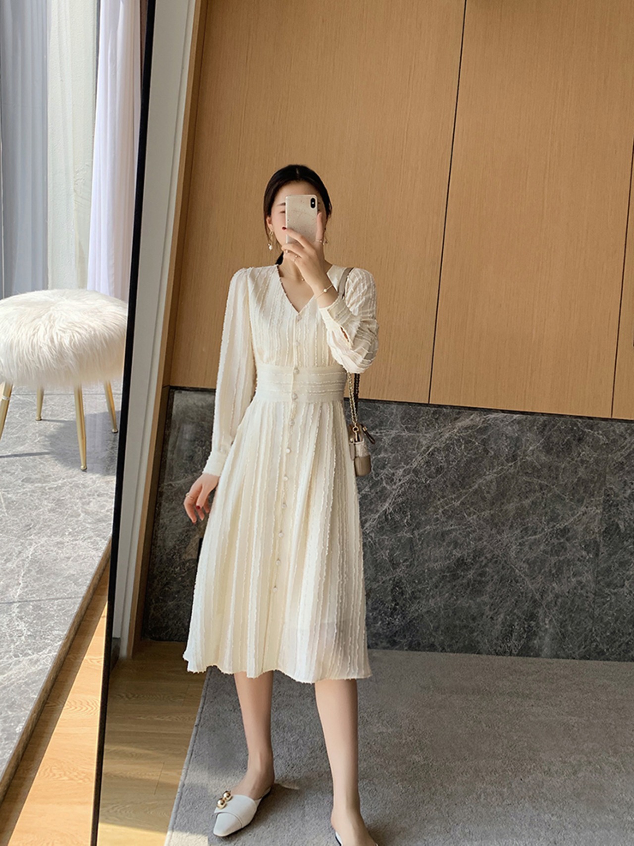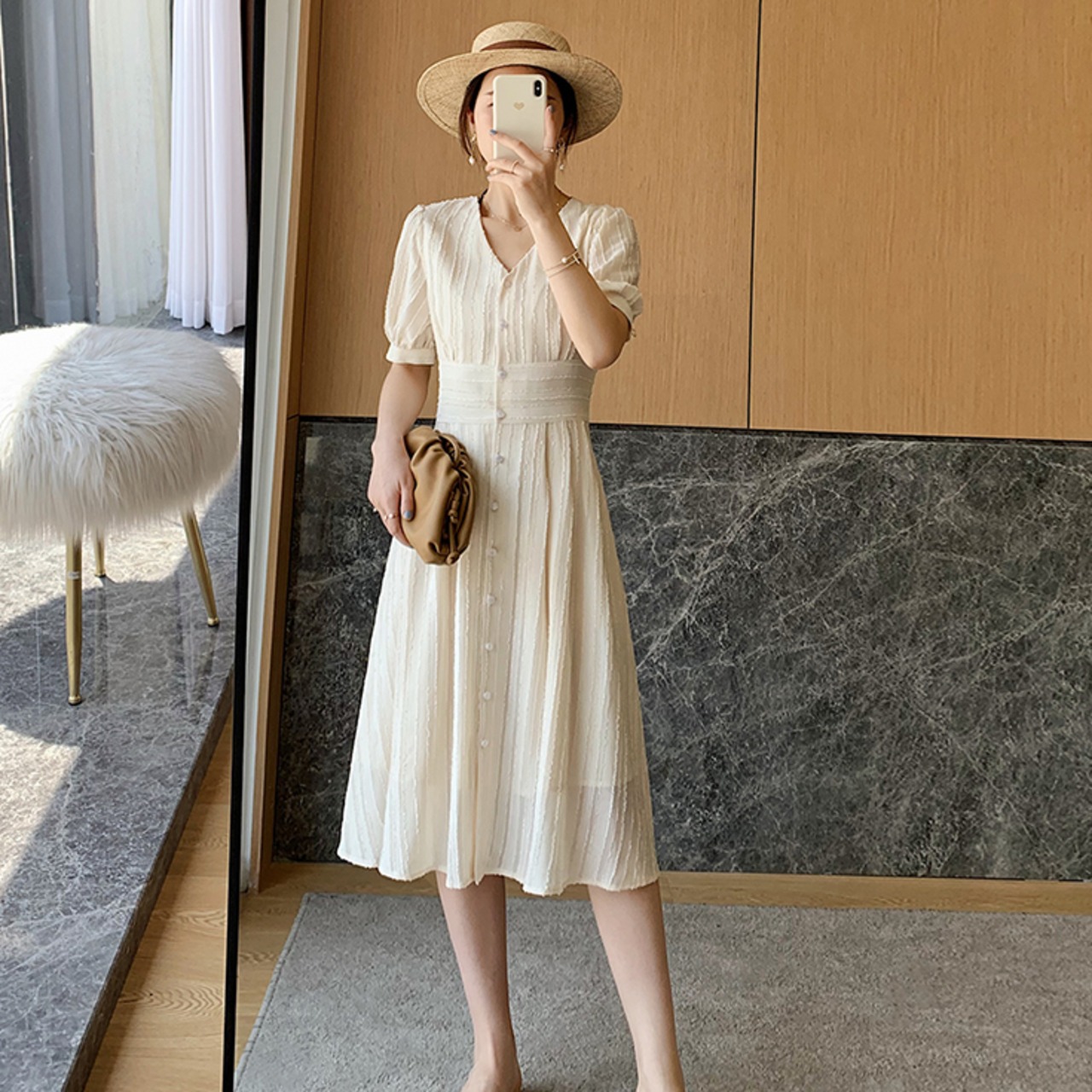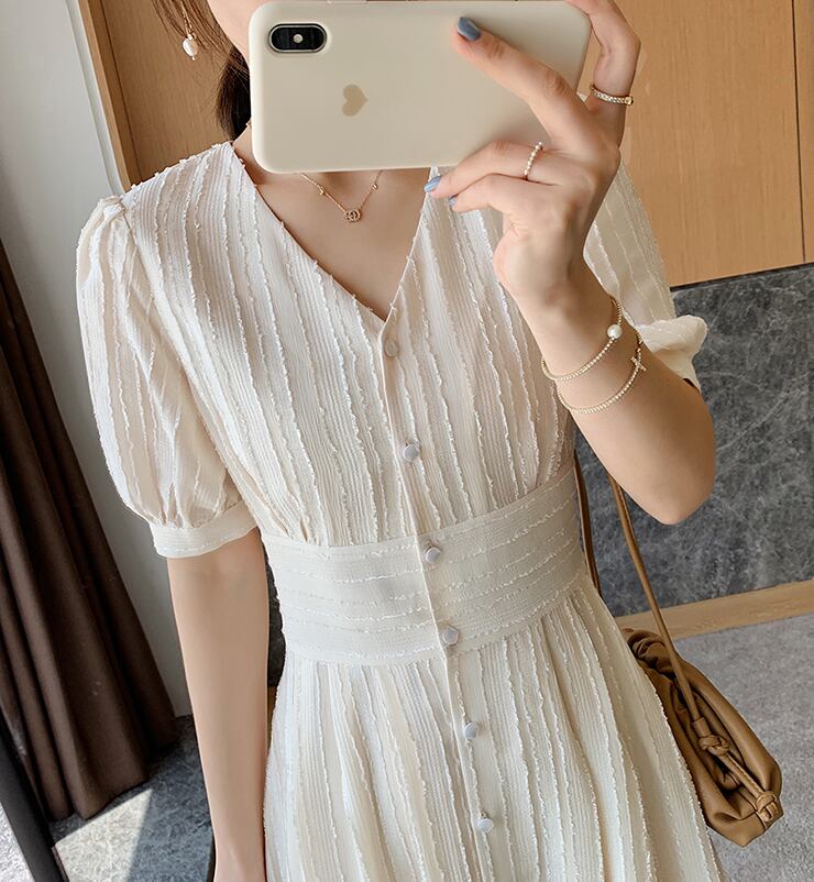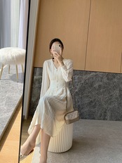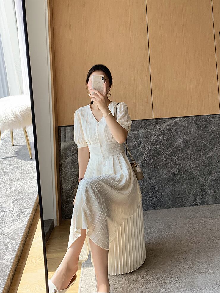 大人可愛い膝丈ワンピースです。
