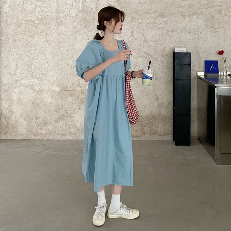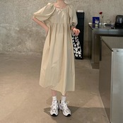 ワンピース フレアワンピース ロング ロング丈 アンクル丈 袖あり 半袖 ボリューム袖 パフスリーブ ラウンドネック フレア セミフレア Aライン リボン 大人可愛い きれいめ シンプル カジュアル 大人 上品 おしゃれ お洒落 かっこいい 大人女子 こなれ感 ラフ ラブリー キュート ガーリー 無地 春 夏 2022 2023 10代 20代 30代 女性用 キッズ 女の子 デート お出かけ 休日 ファッション コーデ スタイル 楽ちん M L XL 2XL パープル イエロー 水色