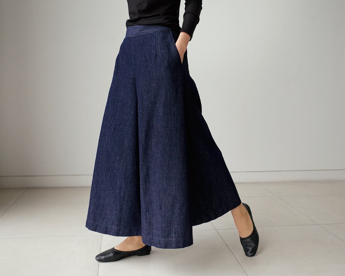ボトムス パンツ ワイドパンツ ガウチョパンツ デニムパンツ イージーパンツ スカンツ スカーチョ 9分丈 フレア ワイド Aライン ハイウエスト ウエストゴム ポリエステル かわいい 大人可愛い きれいめ シンプル カジュアル 大人 上品 おしゃれ お洒落 大人女子 こなれ感 ラフ メンズライク ボーイッシュ キュート ガーリー ルーズ エレガント モダン 主役級 存在感 抜け感 フェミニン 無地 春 夏 秋 冬 オールシーズン シーズンレス デート お出かけ 着回し 普段使い モテ 体系カバー