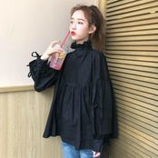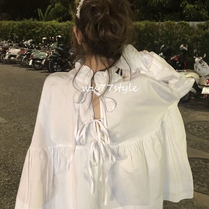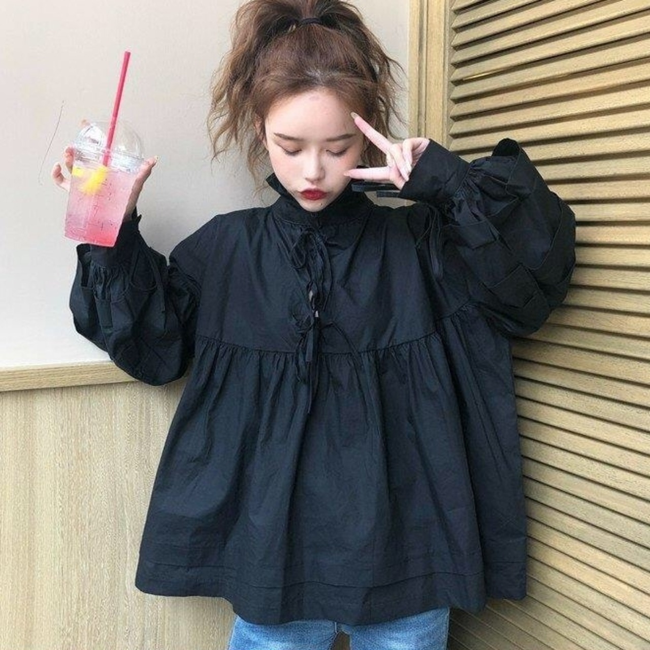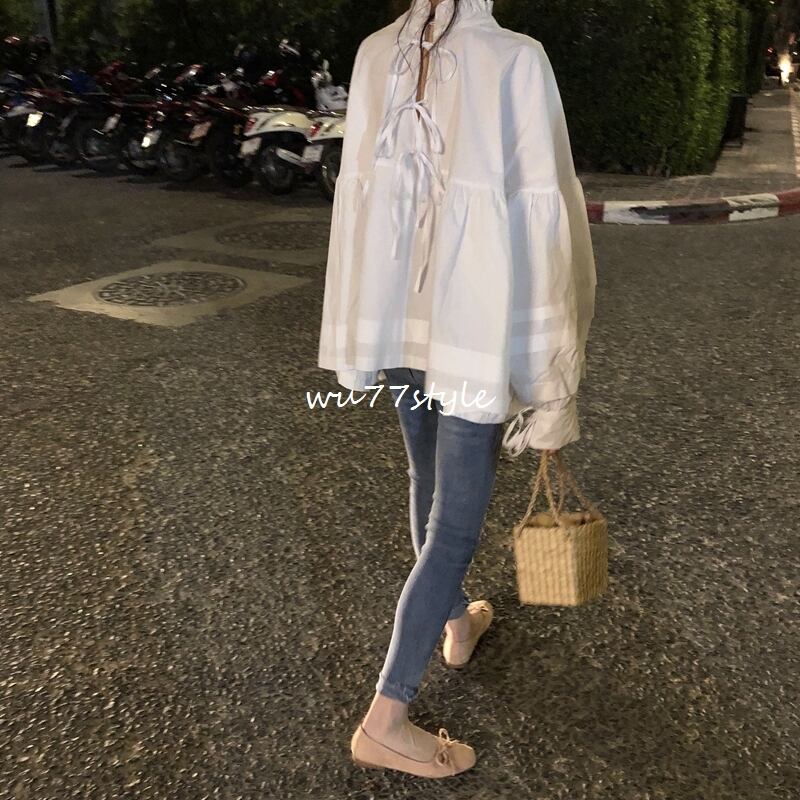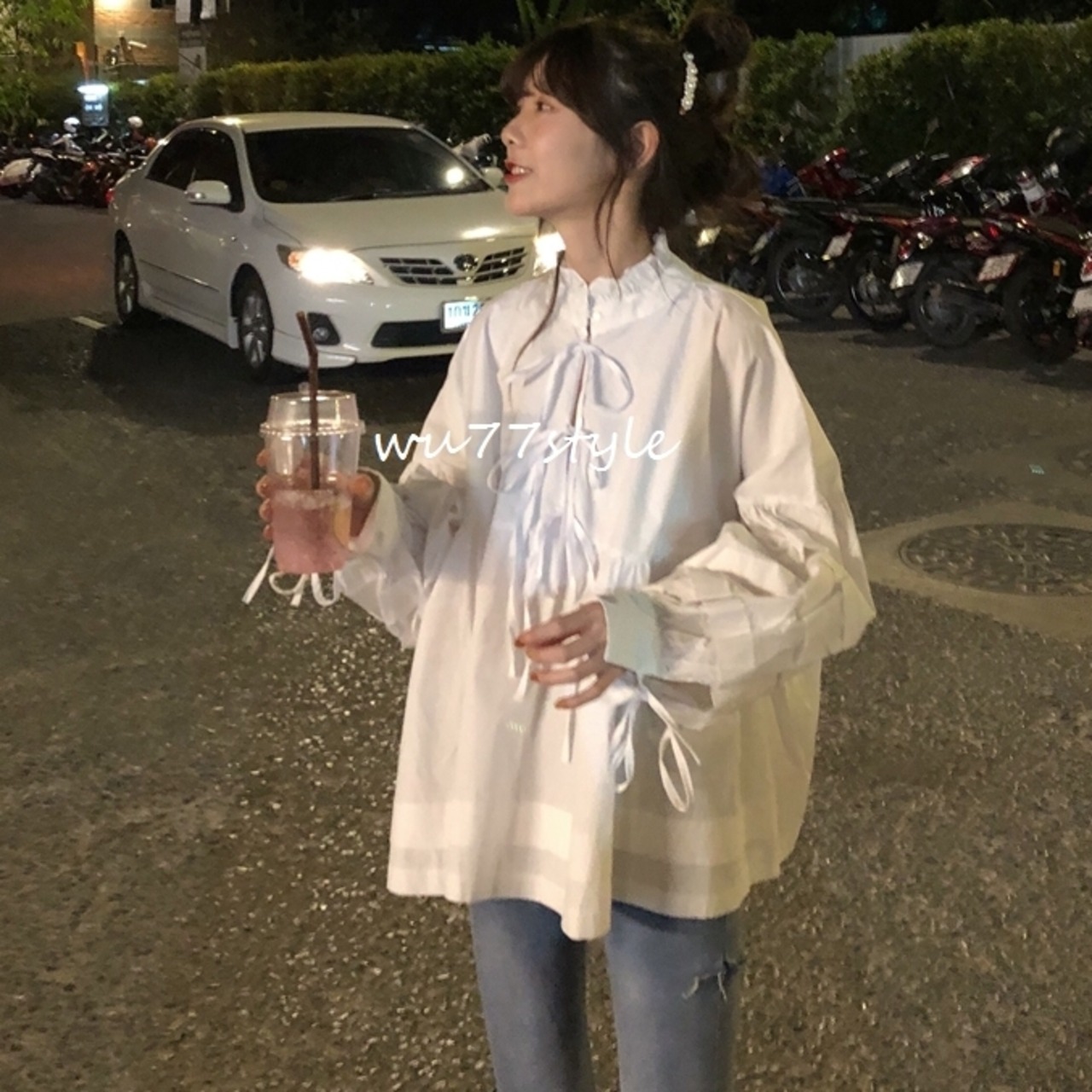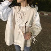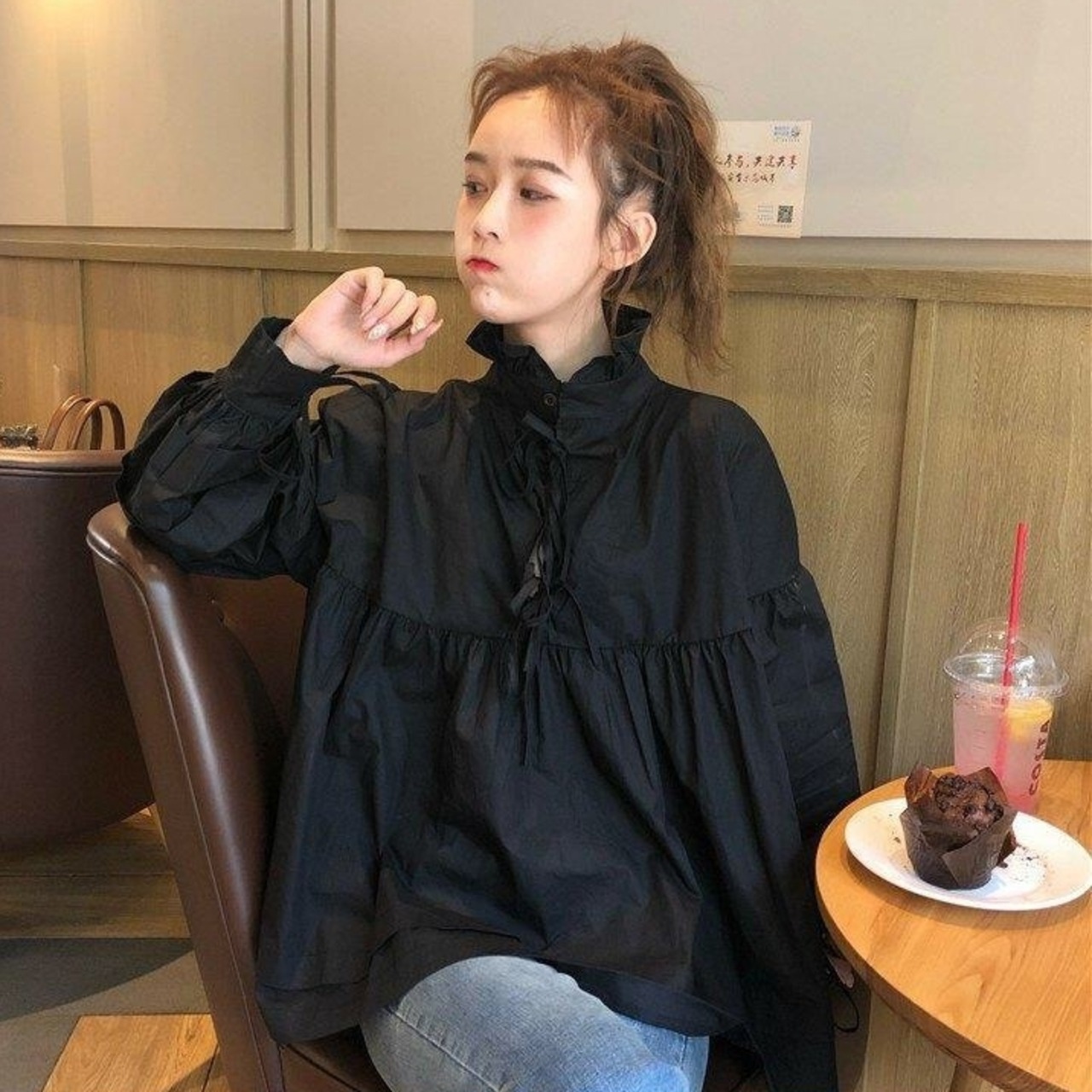 トップス シャツ ブラウス フリル スタンドカラー 袖あり 長袖 ボリューム袖 ドロップショルダー スリット リボン 前後リバーシブル オーバーブラウス チュニック レトロ 大人可愛い きれいめ カジュアル ガーリー 大人可愛い キュート おしゃれ お洒落 大人女子 ゆったり ふんわり Aライン 体型カバー 切替デザイン こなれ感 春 秋 10代 20代 30代 40代 お出かけ デート ランチ カフェ 女子会 旅行 リゾート S M L XL 2XL 3XL 大きいサイズ レディース