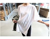 トップス Tシャツ カットソー 白シャツ 白トップス 袖あり 5分袖 五分袖 ドロップショルダー ラウンドネック ワイド スリット サイドスリット かわいい 大人可愛い きれいめ シンプル カジュアル 大人 上品 おしゃれ お洒落 大人女子 こなれ感 ラフ メンズライク マニッシュ ボーイッシュ キュート ルーズ 個性的 セクシー エレガント モダン 抜け感 ストリート 無地 春 夏 秋 レディース 女性用 デート お出かけ 休日 着回し 普段使い プレゼント ギフト プチプラ 安い ゆったり ゆる