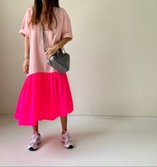 ネオンカラーの切り替えから広がる綺麗なマーメイドラインが、女性らしい雰囲気を演出します。
