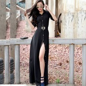 ワンピース シャツワンピース ロング ロング丈 マキシ マキシ丈 9分丈 袖あり 長袖 Vネック 襟付き スタンダードカラー セミフレア スリム 細身 Iライン ベルト ウエストマーク ハイウエスト 前開き ボタン かわいい 大人可愛い きれいめ シンプル 大人 上品 おしゃれ お洒落 かっこいい エキゾチック 大人女子 こなれ感 個性的 クール モード系 セクシー エレガント モダン 抜け感 フェミニン 無地 春 秋 デート お出かけ 着回し 普段使い スタイル モテ 体系カバー 美脚 脚長