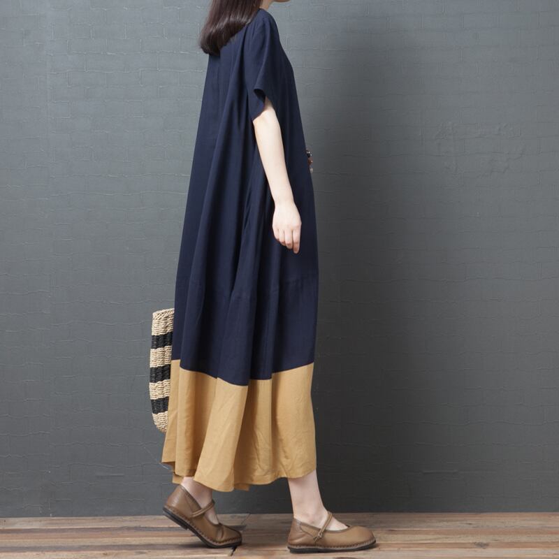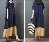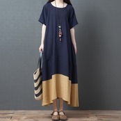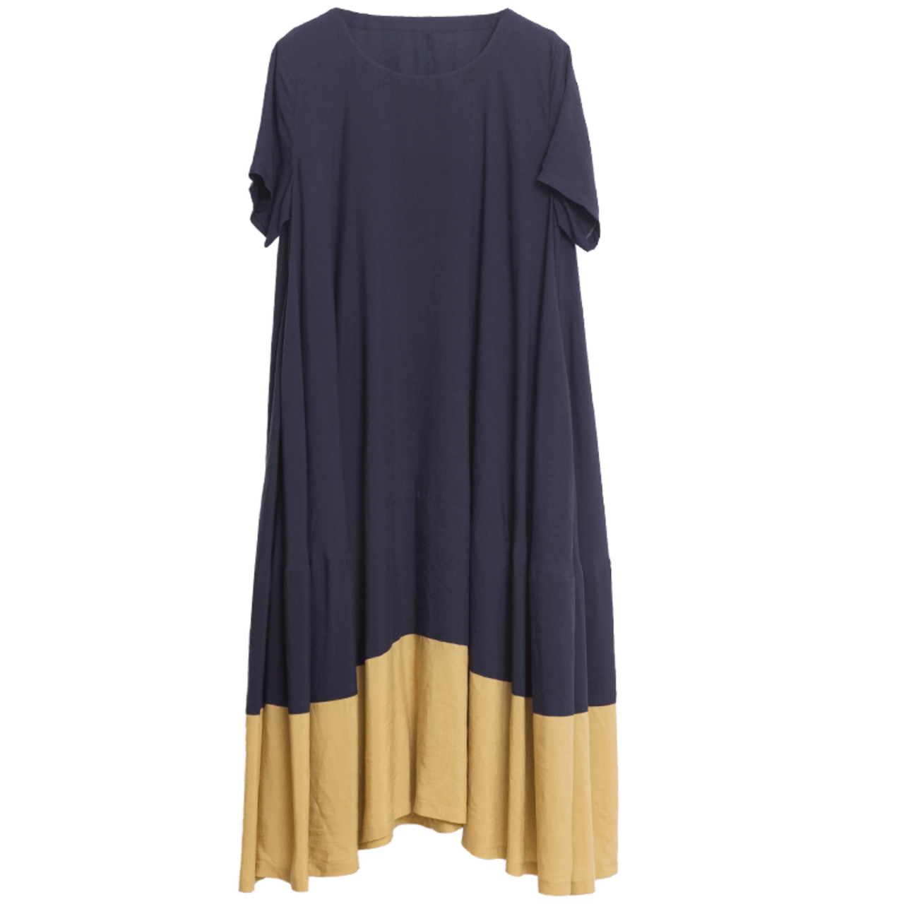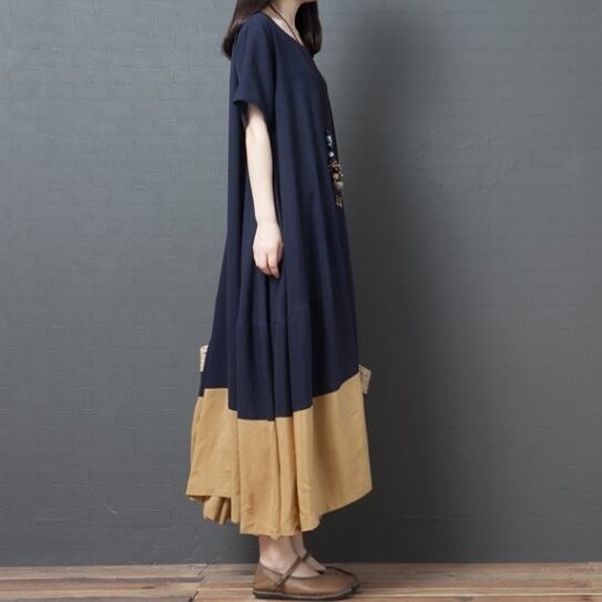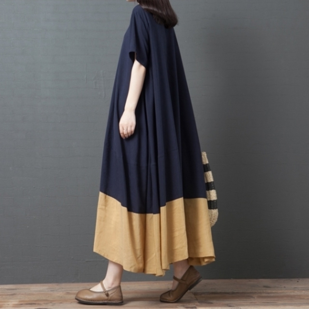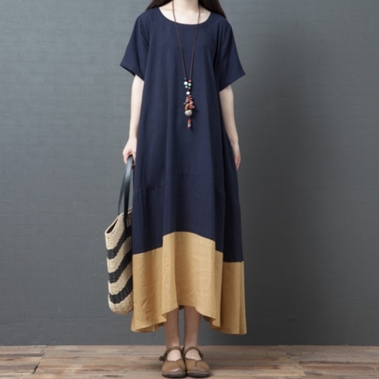 ワンピース ロングワンピース ラウンドネック 半袖 ゆったり リラックス 体型カバー バイカラー 切替デザイン ポケット エスニック調 フレア Aライン ロング丈 フェミニン 大人女子 オシャレ おしゃれ お洒落 カジュアル お出かけ デイリー 普段使い お出かけ デート デイリー 普段使い カフェ リゾート 休日 春 夏 20代 30代 40代 50代 大きいサイズ レディース