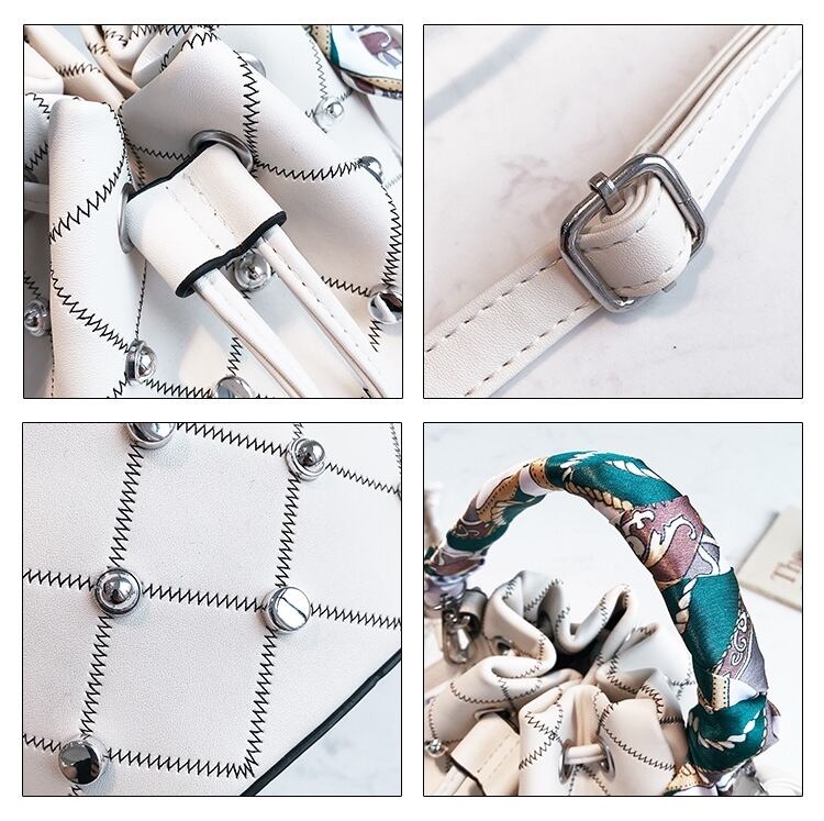 持ち手に巻かれたスカーフがエレガントなショルダーバッグです。
