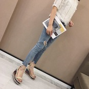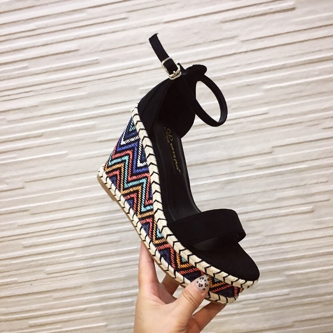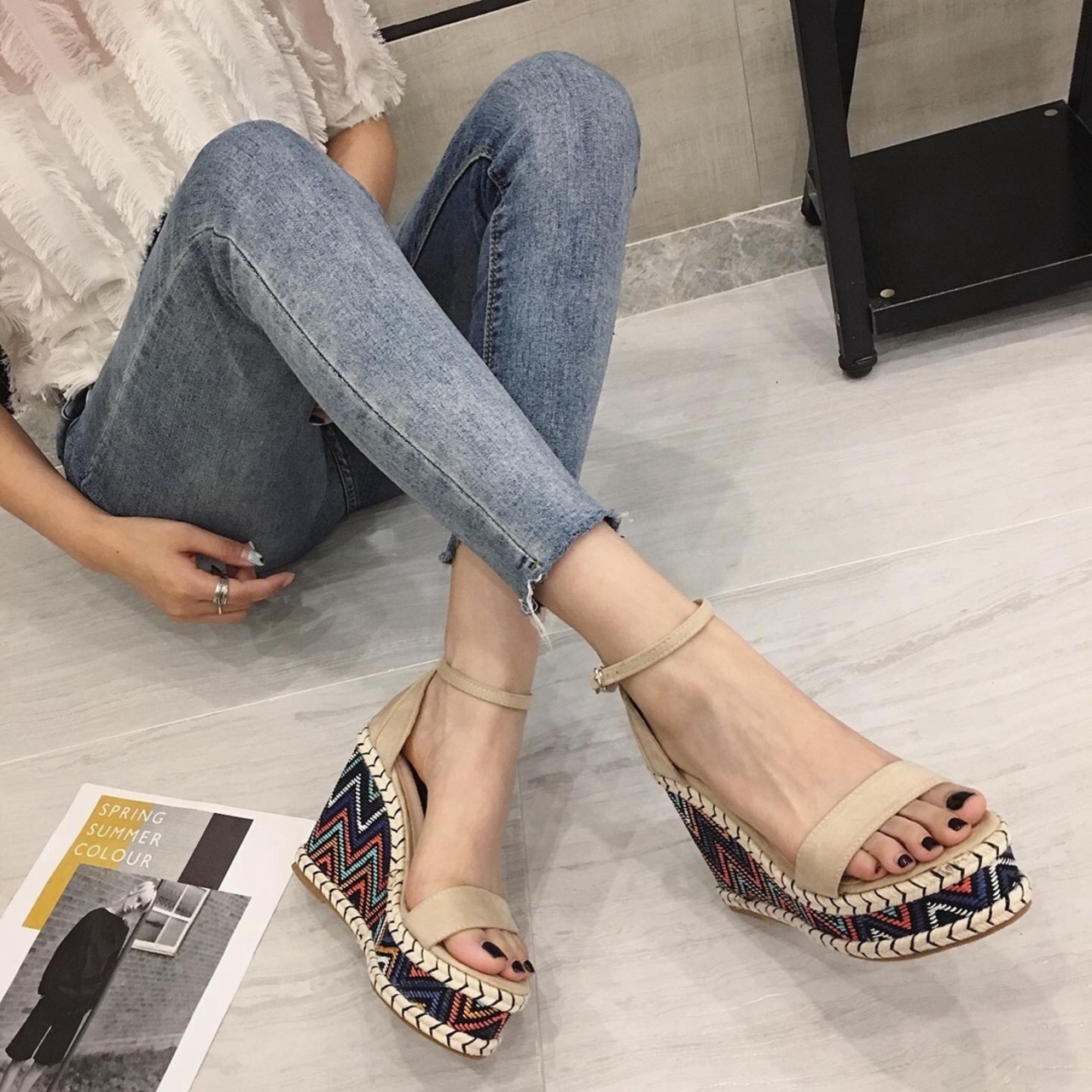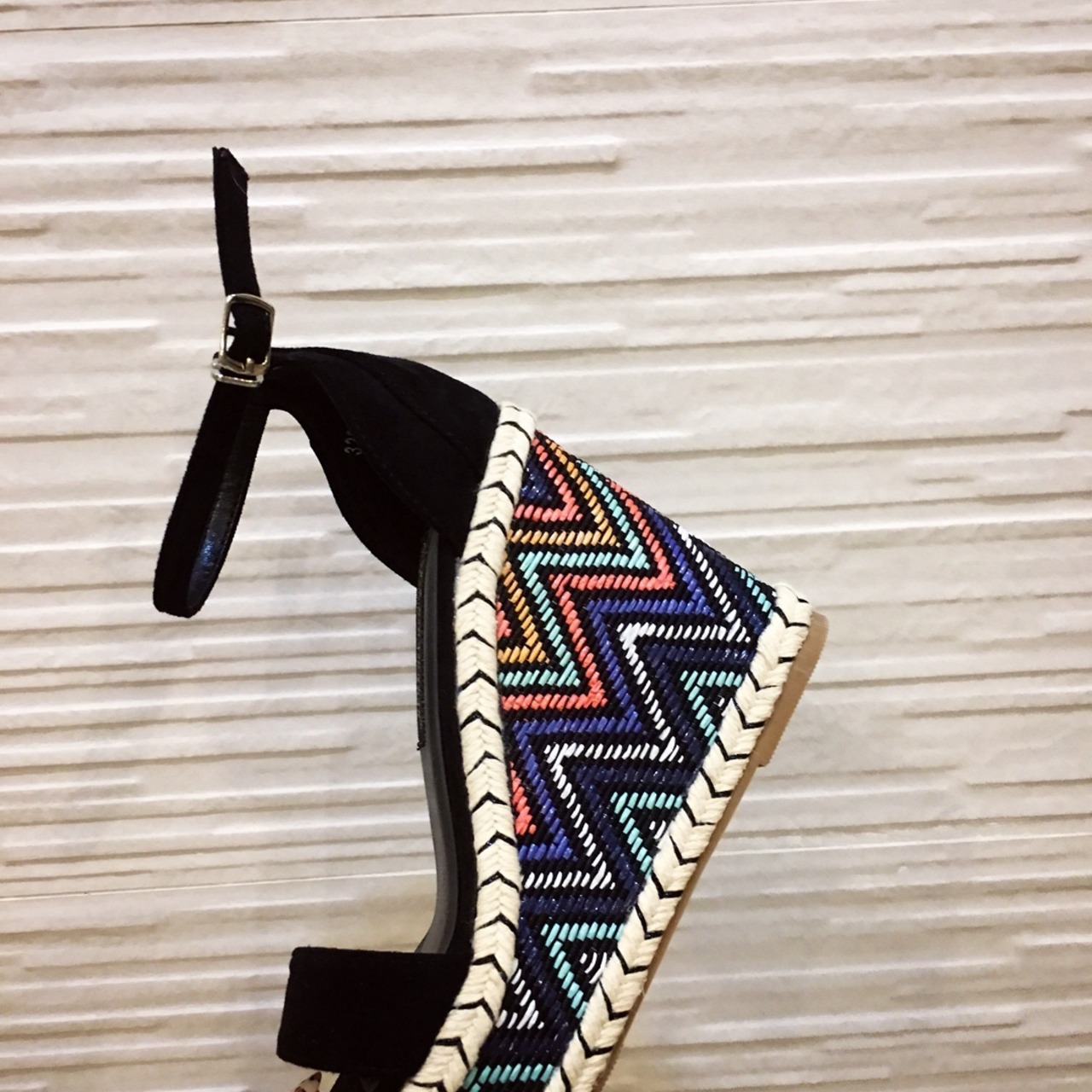 ボヘミアンな雰囲気のウェッジソールミュールです。