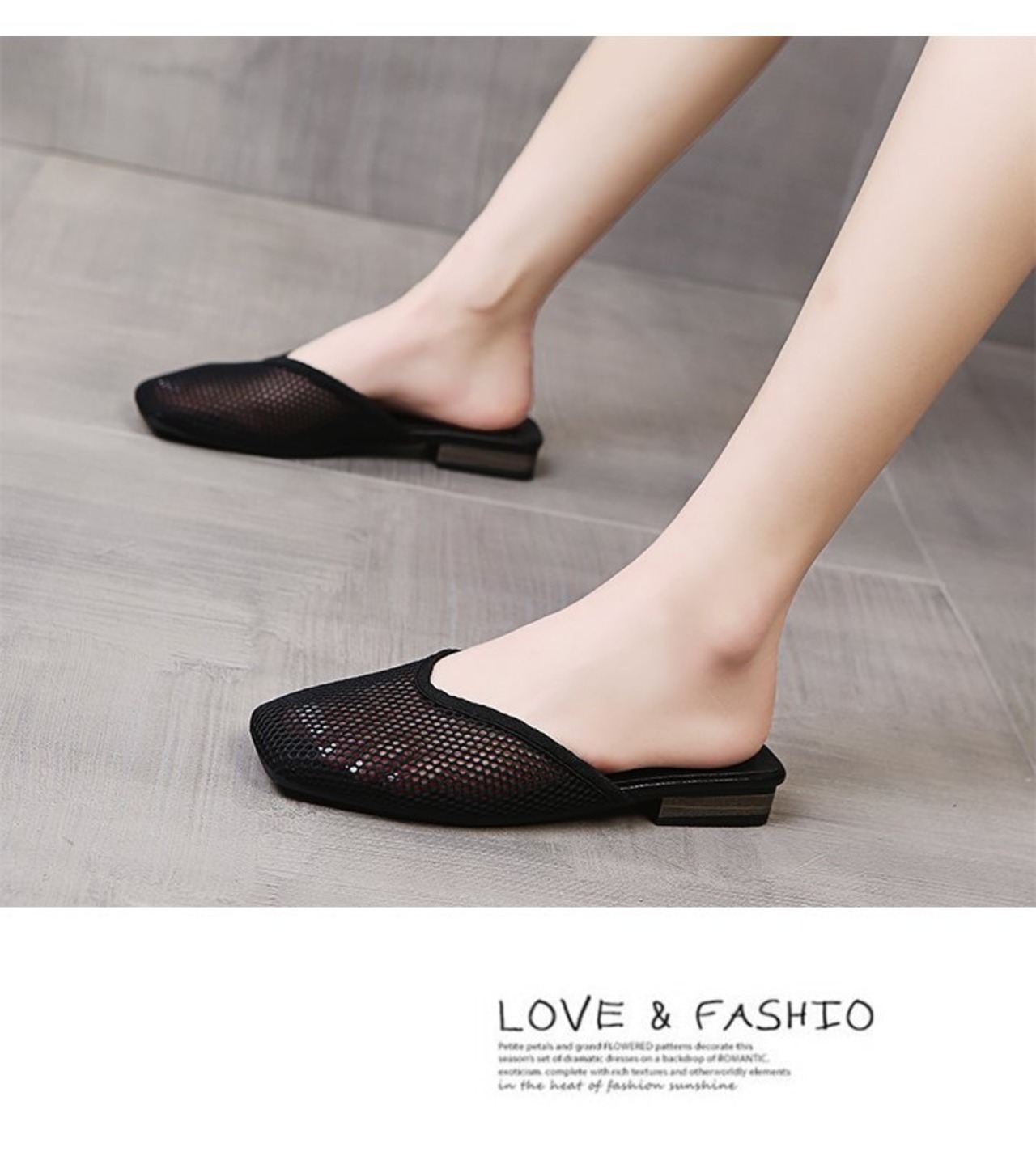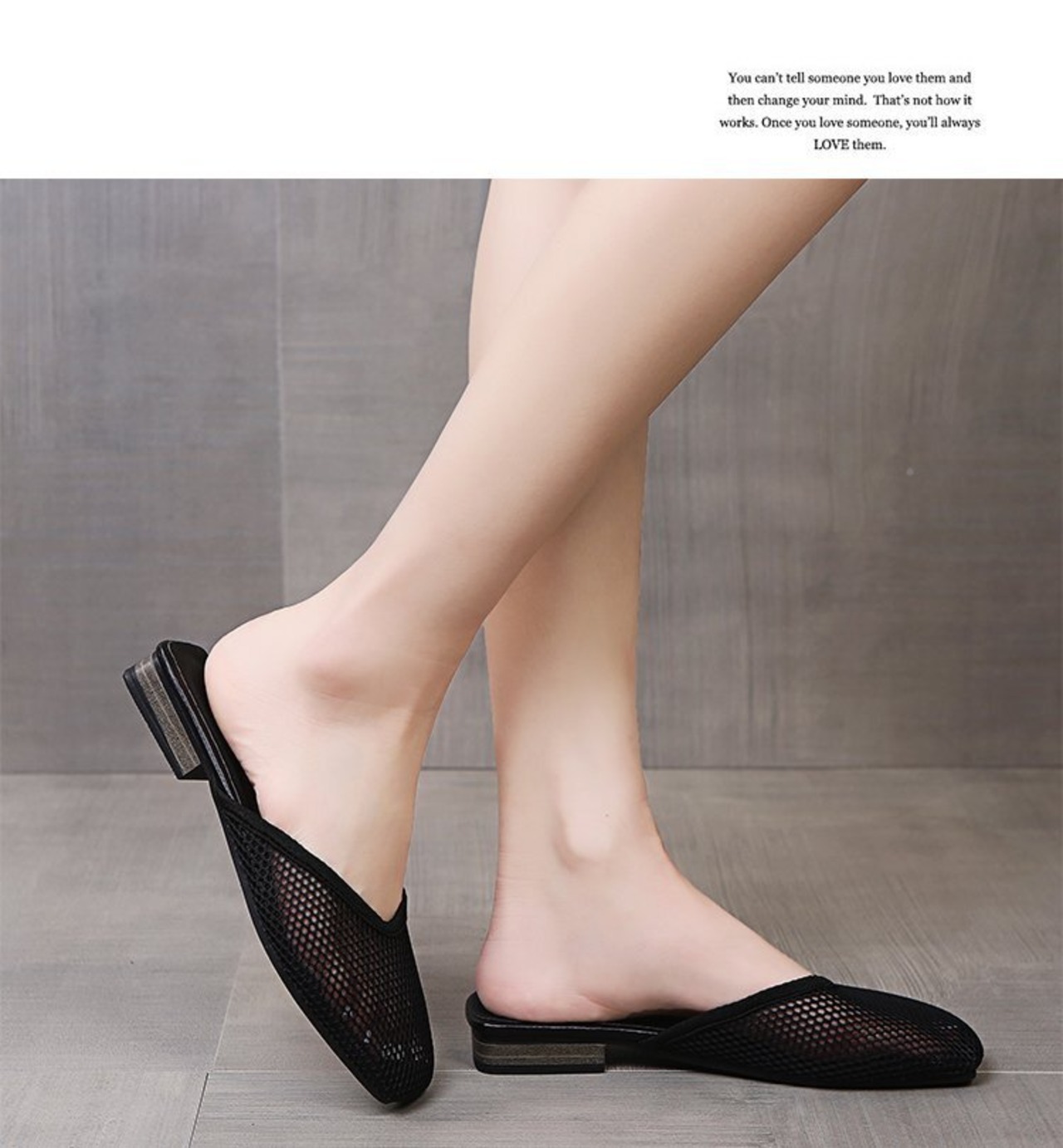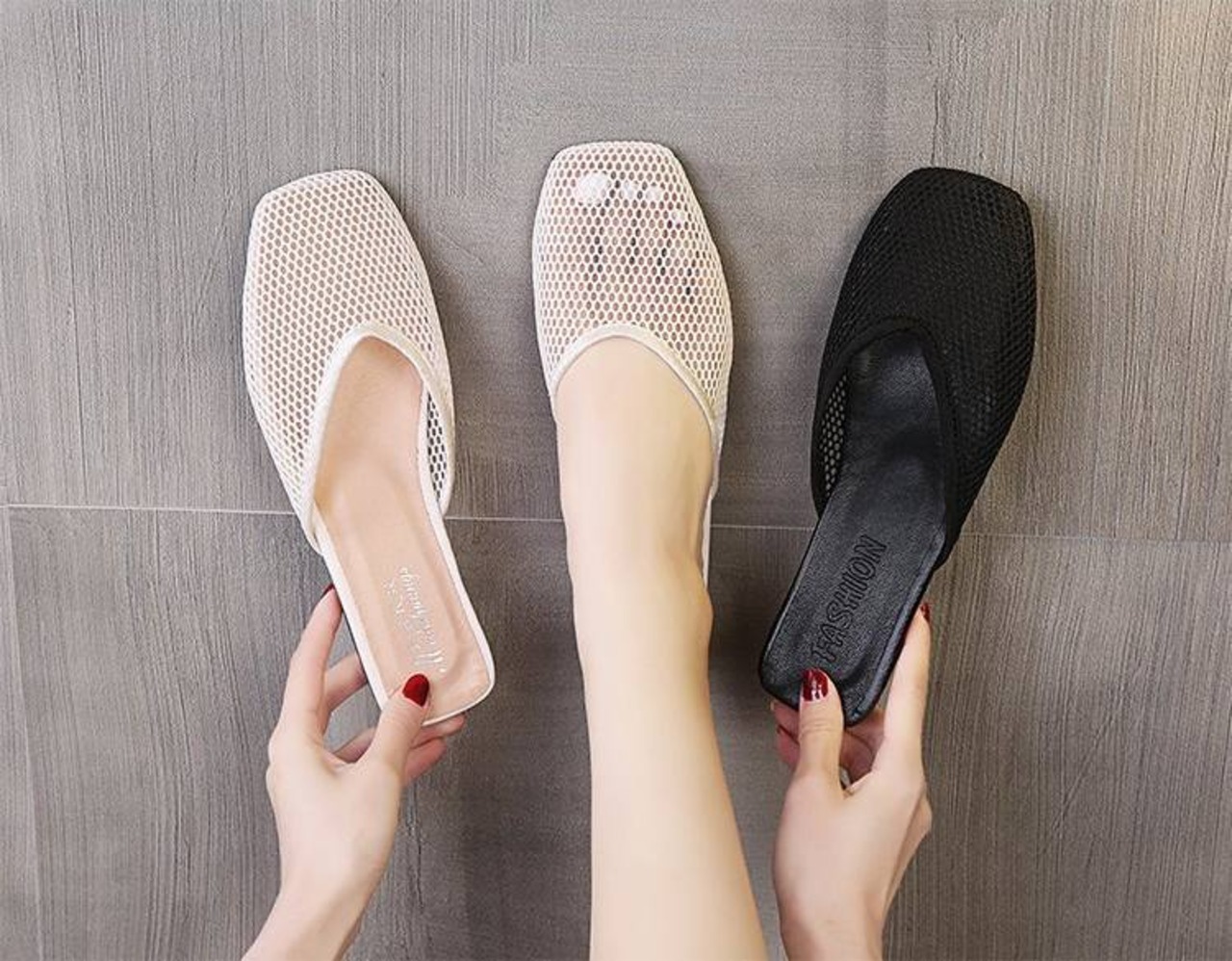 踵がないのでサッと履けて楽ちんな上、疲れにくいローヒールが魅力的。