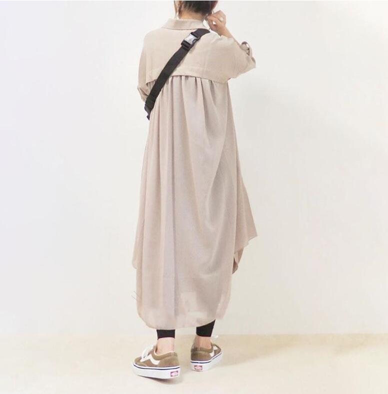 アウター スプリングコート ロングシャツ シャツスタイル 羽織り 薄手 ゆったり ロングコート 長袖 ドロップショルダー バックル付き フレア Aライン こなれ感 フェミニン 大人女子 オシャレ おしゃれ お洒落 ラフ ルーズ 体型カバー カジュアル お出かけ 通勤 デート デイリー 普段使い 旅行 春 秋 10代 20代 30代 40代 50代 大きいサイズ レディース
