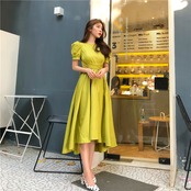 パフスリーブとフィッシュテールスカートが可愛いワンピースです。