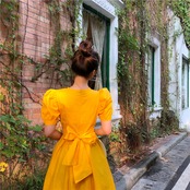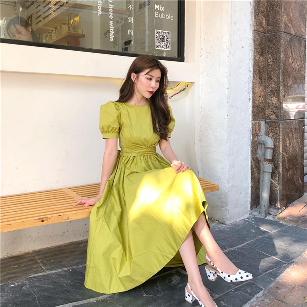 ワンピース フレアワンピース Aライン ひざ丈 ミモレ丈 半袖 パフスリーブ フレア フィッシュテール バックリボン ハイウエスト 無地 かわいい 大人可愛い きれいめ シンプル カジュアル 大人 上品 おしゃれ フェミニン レトロ 大人カジュアル 大人女子 こなれ感 ガーリー 存在感 ナチュラル ベーシック クラシカル 華やか ロマンティック 春 夏 レディース OL 学生 通学 デート お出かけ 公園デビュー 女子会 お泊まり 休日 旅行 ホテル レストラン 着回し 普段使い 重ね着