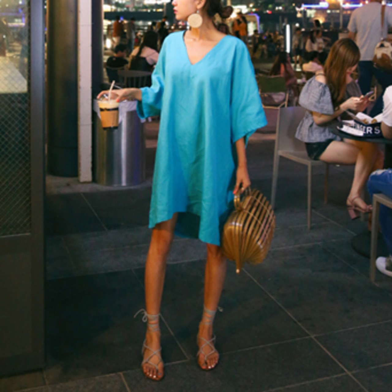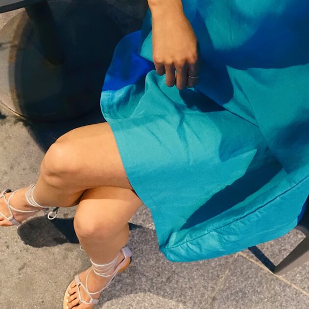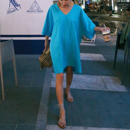 美しいブルーが目を惹くミニ丈ののワンピースです。