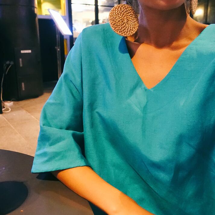 すっきりとしたシルエットとVネックで抜け感を演出♪