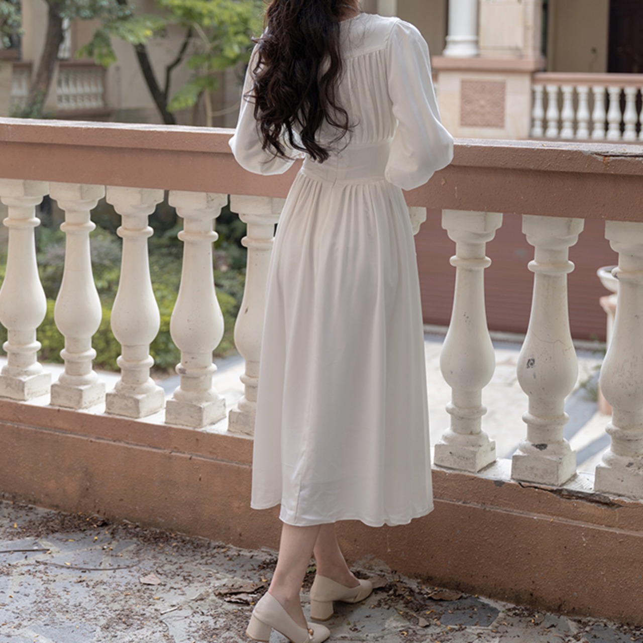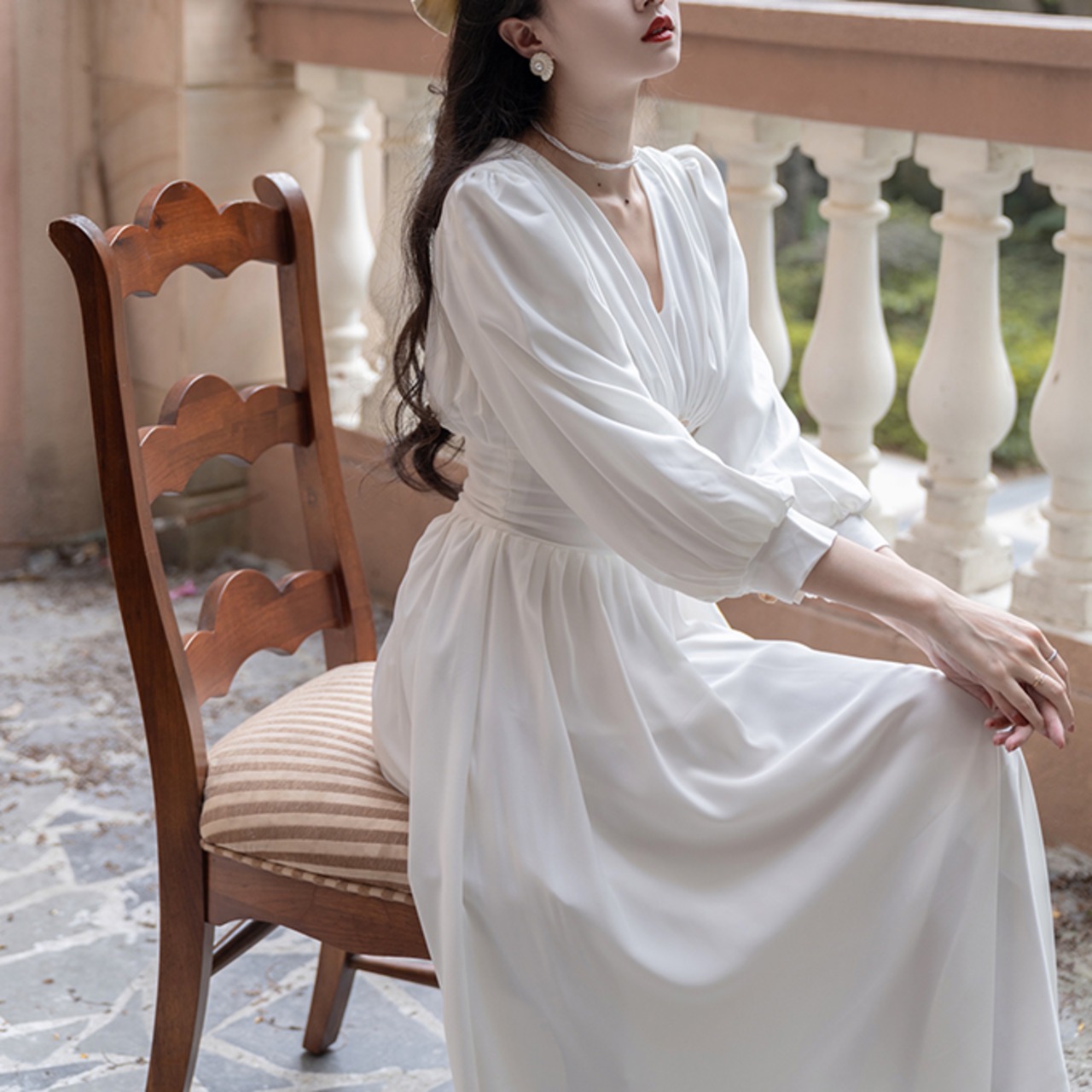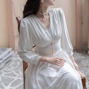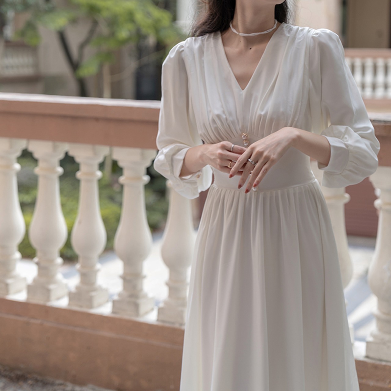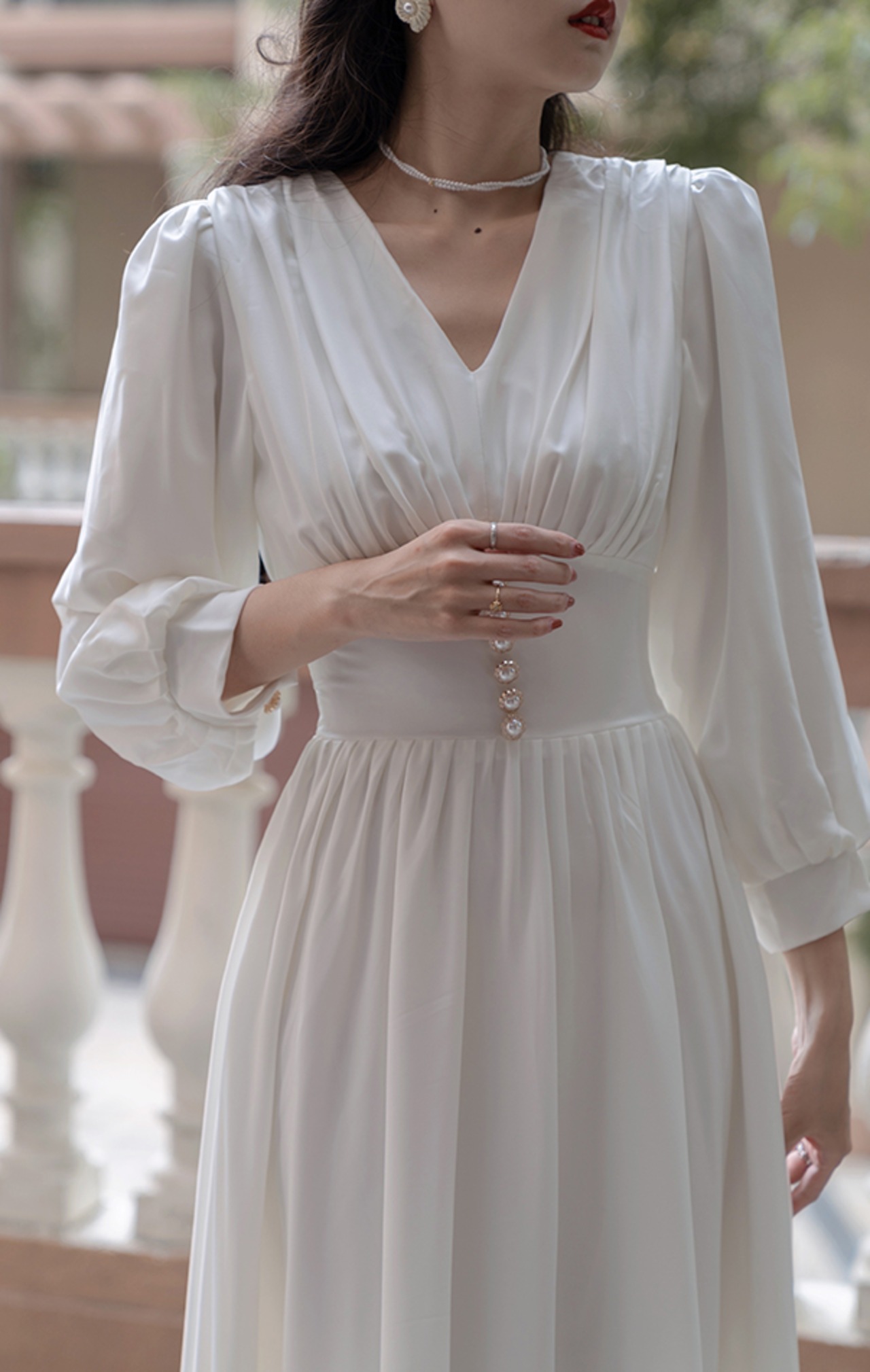 ドレス ワンピース パーティドレス Aラインドレス ワンピドレス ミモレ丈 ロング丈 長袖 バルーンスリーブ カシュクール Aライン ウエストマーク ハイウエスト 透け感 かわいい 大人可愛い きれいめ シンプル 大人 上品 大人可愛い キュート ガーリー フォーマル ナチュラル 華やか クラシック 王道 主役級 存在感 ガーリー お姫様 お嬢様 清楚 無地 レディース 女性用 デート パーティー イベント ホテル レストラン 夏 ウェディング ブライダル お呼ばれ イベント パーティ 謝恩会