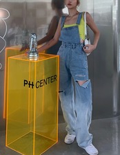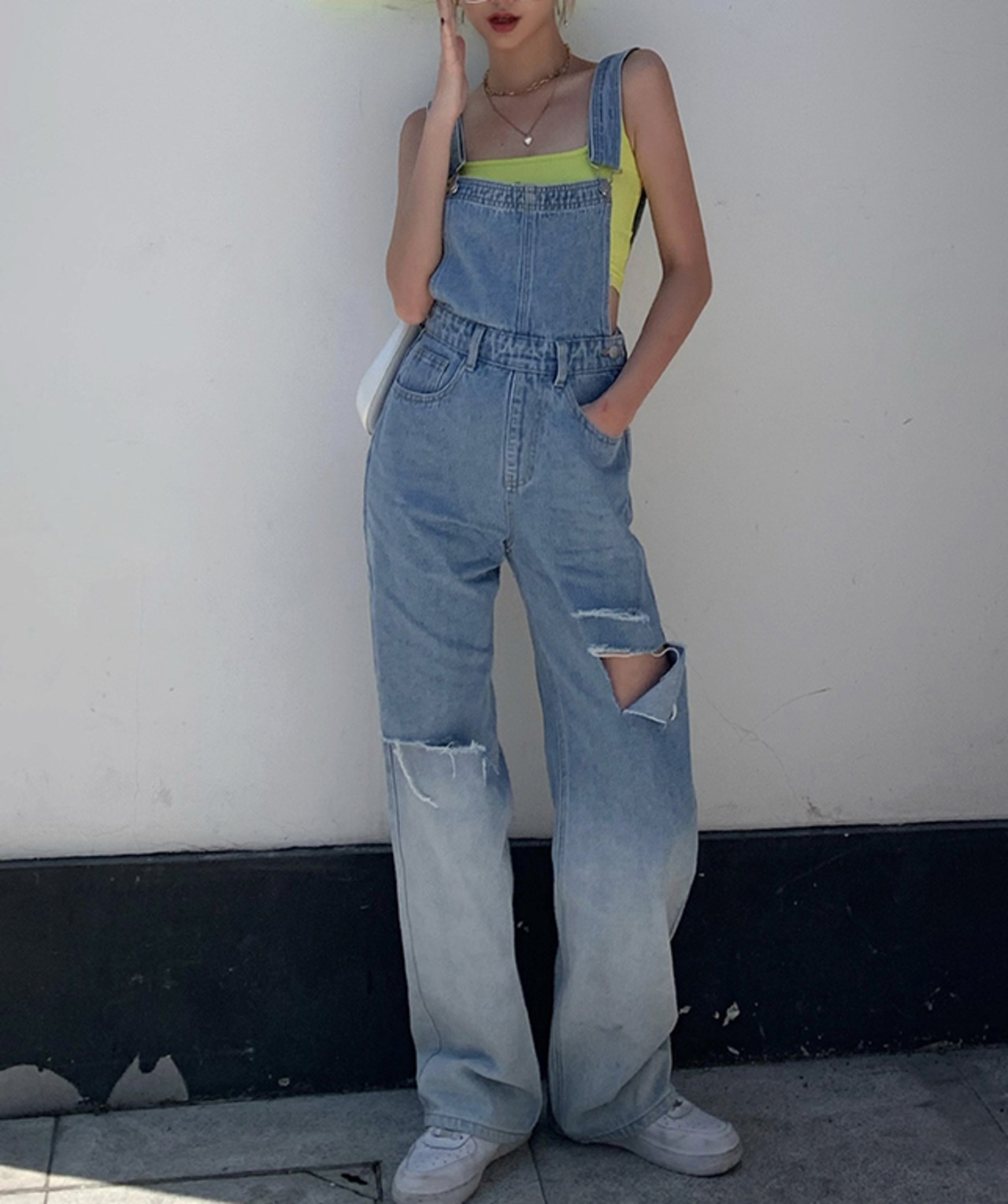 ダメージ加工がおしゃれなデニムオーバーオールです。