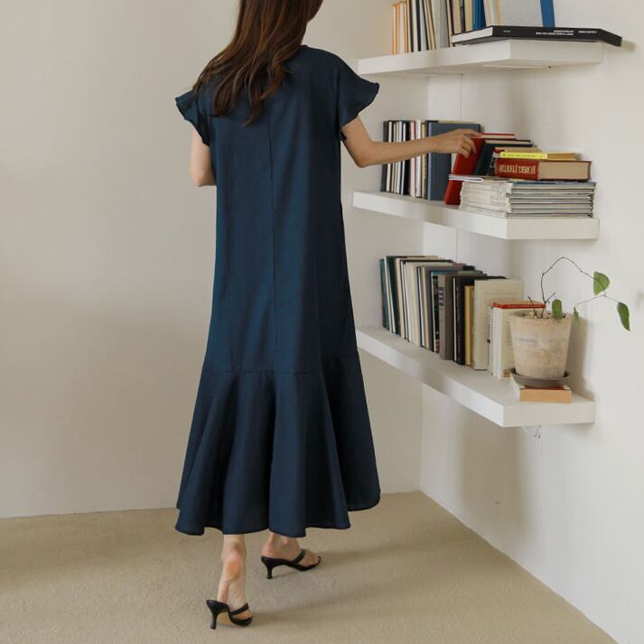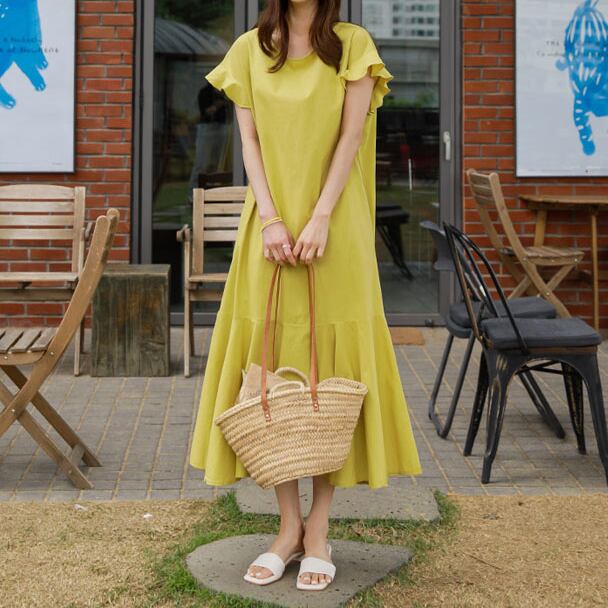 ワンピース フレアワンピース Aライン 膝下 ミモレ丈 ロング丈 半袖 フレアスリーブ フレンチスリーブ ラウンドネック フレア 無地 大人可愛い きれいめ シンプル カジュアル 大人 上品 おしゃれ フェミニン さわやか 大人カジュアル 大人女子 こなれ感 抜け感 ナチュラル ベーシック 春 夏 秋 レディース ママ OL 通勤 学生 通学 デート お出かけ 公園デビュー 女子会 お泊まり 休日 リゾート 旅行 海 プール ホテル レストラン 着回し 普段使い 重ね着 華奢見え 美脚 きちんと感