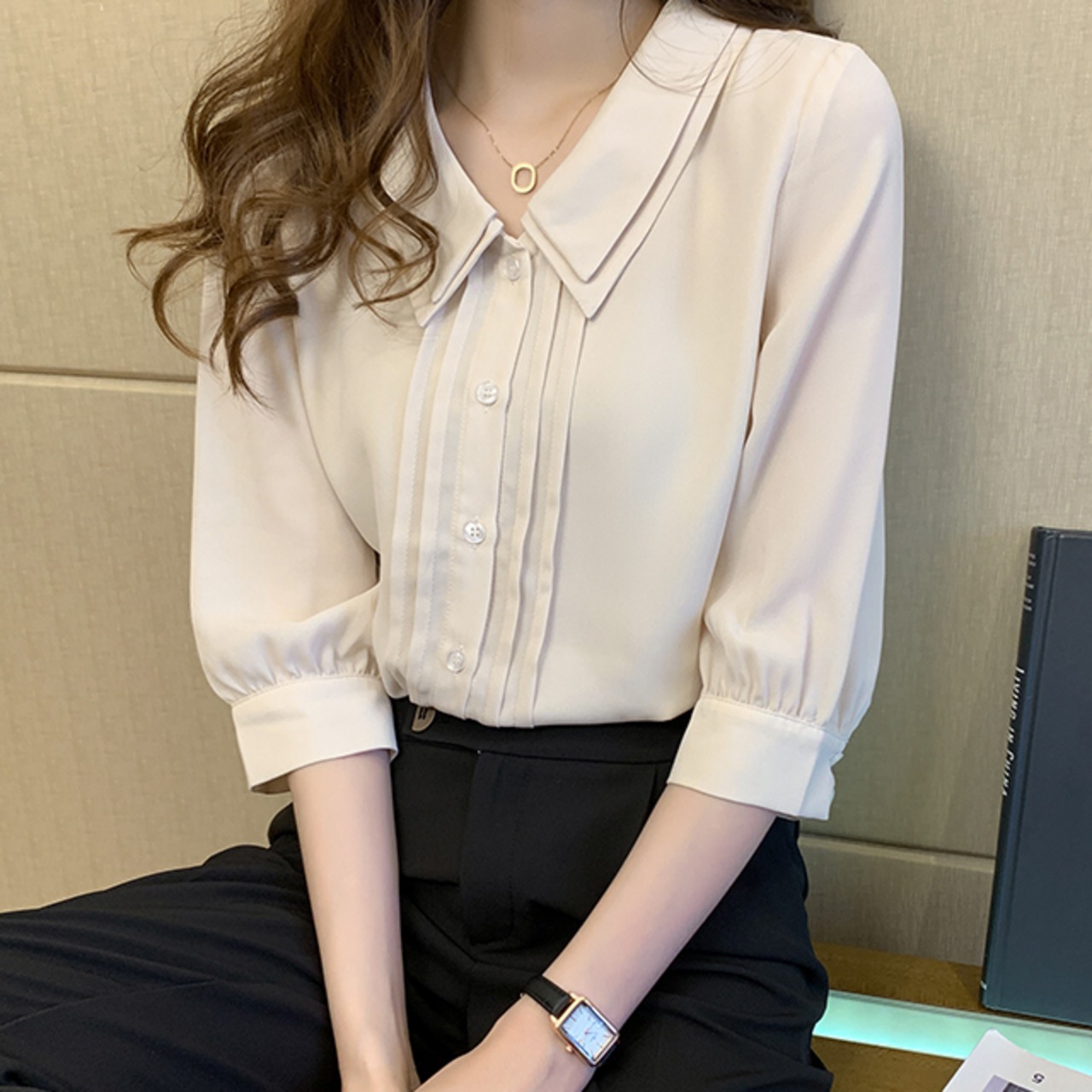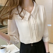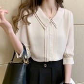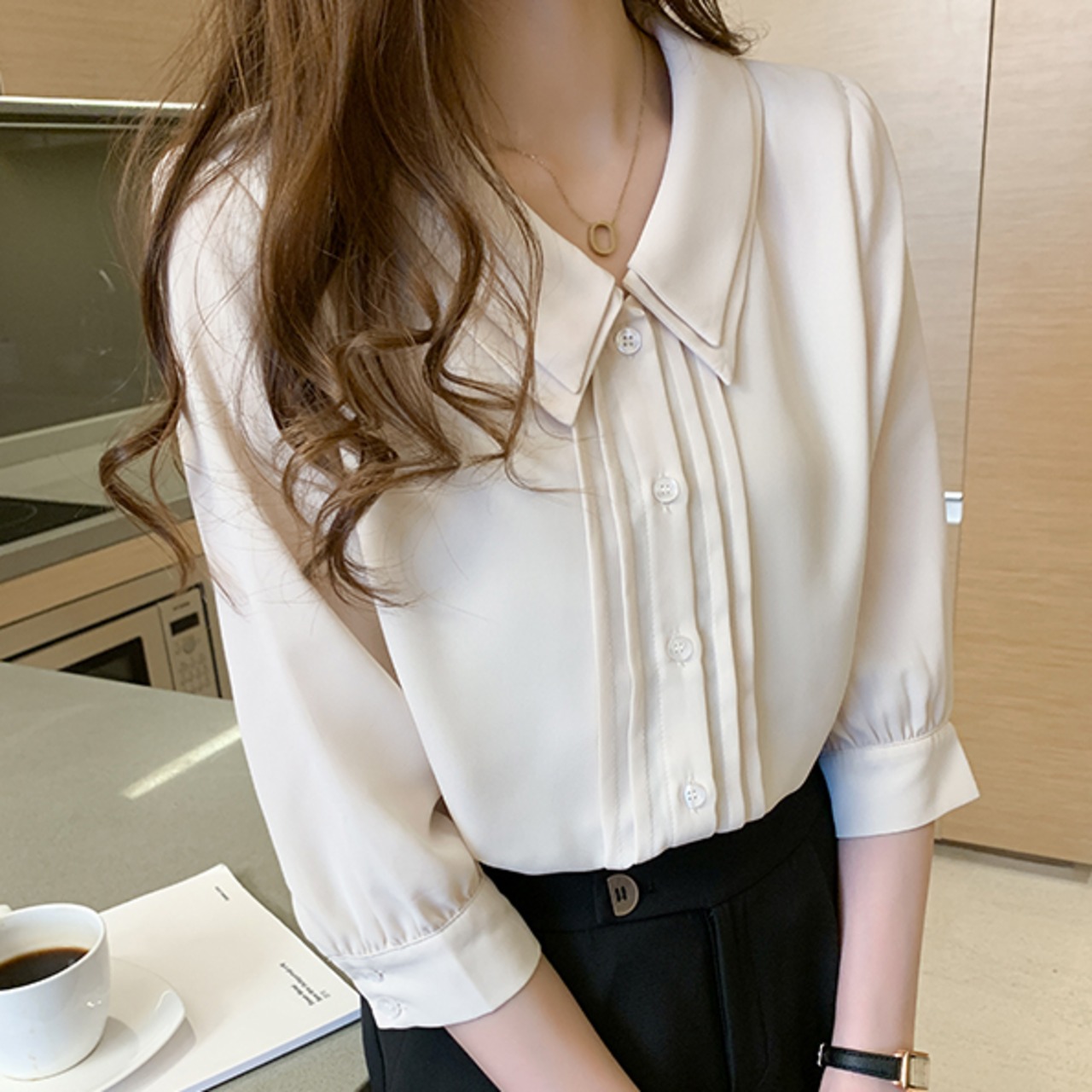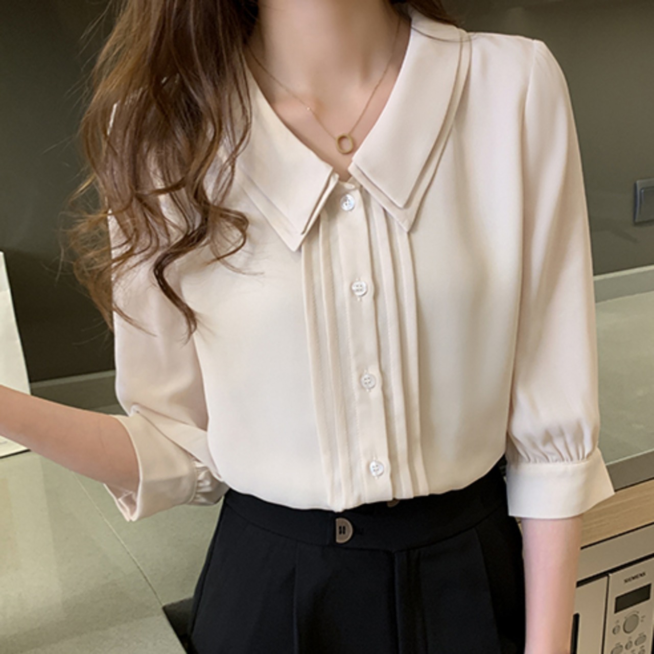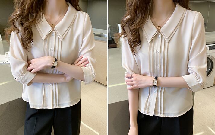 ブラウス ダブルカラー 七分袖 ピンタック シフォン 透け感 無地 かわいい 大人可愛い きれいめ シンプル 大人 上品 おしゃれ 大人カジュアル 大人女子 キュート ガーリー フェミニン フォーマル ナチュラル ベーシック 春 夏 秋 レディース オフィス ビジネス OL 通勤 学生 通学 デート お出かけ 公園デビュー 女子会 旅行 リモート会議 ホテル レストラン 着回し 普段使い 重ね着 デイリー コーデ モテ きちんと感 日常使い 休日
