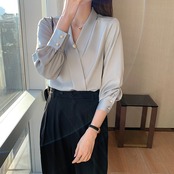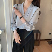 すっきりとしたシルエットのカシュクールシフォンブラウス。