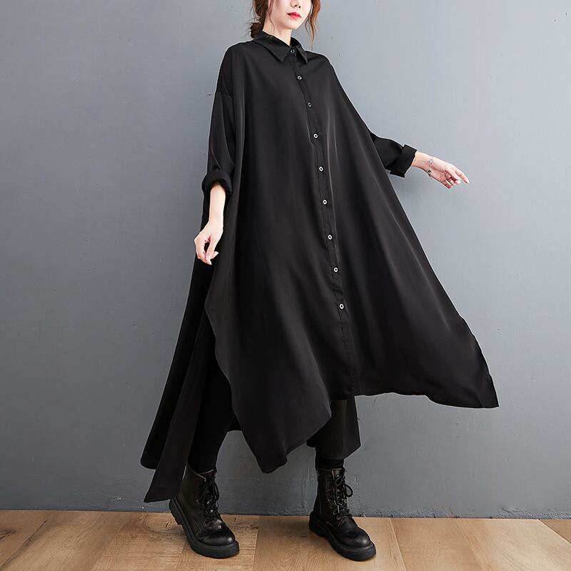 ワンピース シャツワンピース アシンメトリー スリット 長袖 無地 切替デザイン ミディアム丈 ミモレ丈 スリット フレア Aライン ゆったり 体型カバー こなれ感 大人女子 オシャレ おしゃれ お洒落 きれいめ カジュアル デイリー 普段使い お出かけ デート ランチ 女子会 お呼ばれ 旅行 春 秋 20代 30代 40代 50代 大きいサイズ レディース