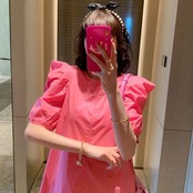 ボリューミーなバルーンスリーブが可愛いワンピースです。