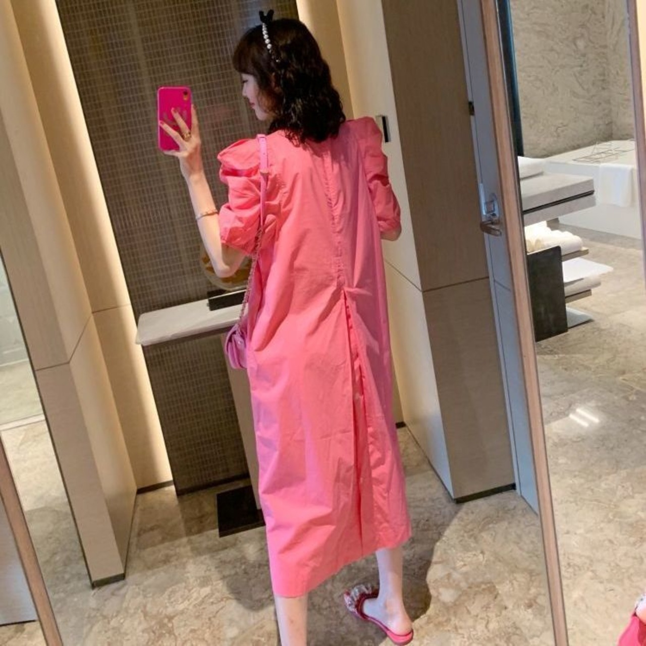 ワンピース シャツワンピース ミモレ ミモレ丈 ロング ロング丈 袖あり 半袖 5分袖 五分袖 ボリューム袖 パフスリーブ パワーショルダー クルーネック ワイド 綿 コットン かわいい 大人可愛い きれいめ シンプル カジュアル 大人 上品 おしゃれ お洒落 大人女子 こなれ感 ラフ ラブリー キュート ガーリー ルーズ 主役級 存在感 フェミニン 無地 春 夏 デート お出かけ 休日 着回し 普段使い 楽ちん 体系カバー プレゼント ギフト 大きいサイズ 大きめ ビッグサイズ ゆったり ゆる