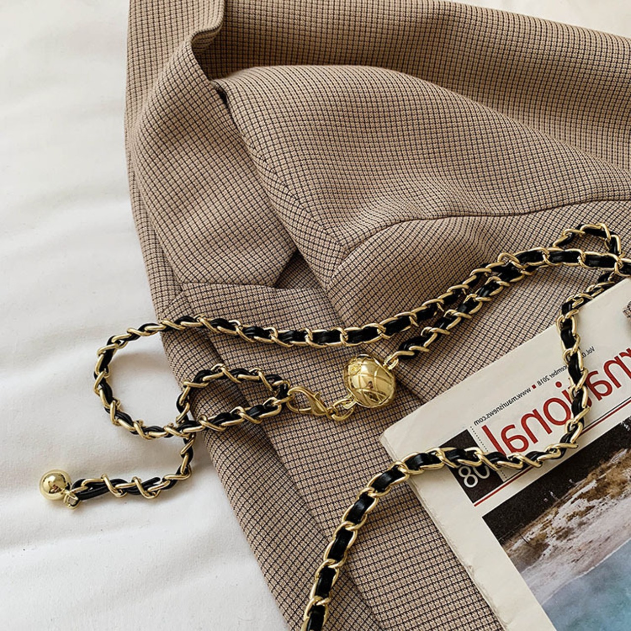 ゴールドのチェーンやフラワーモチーフの装飾がお洒落な一品です。