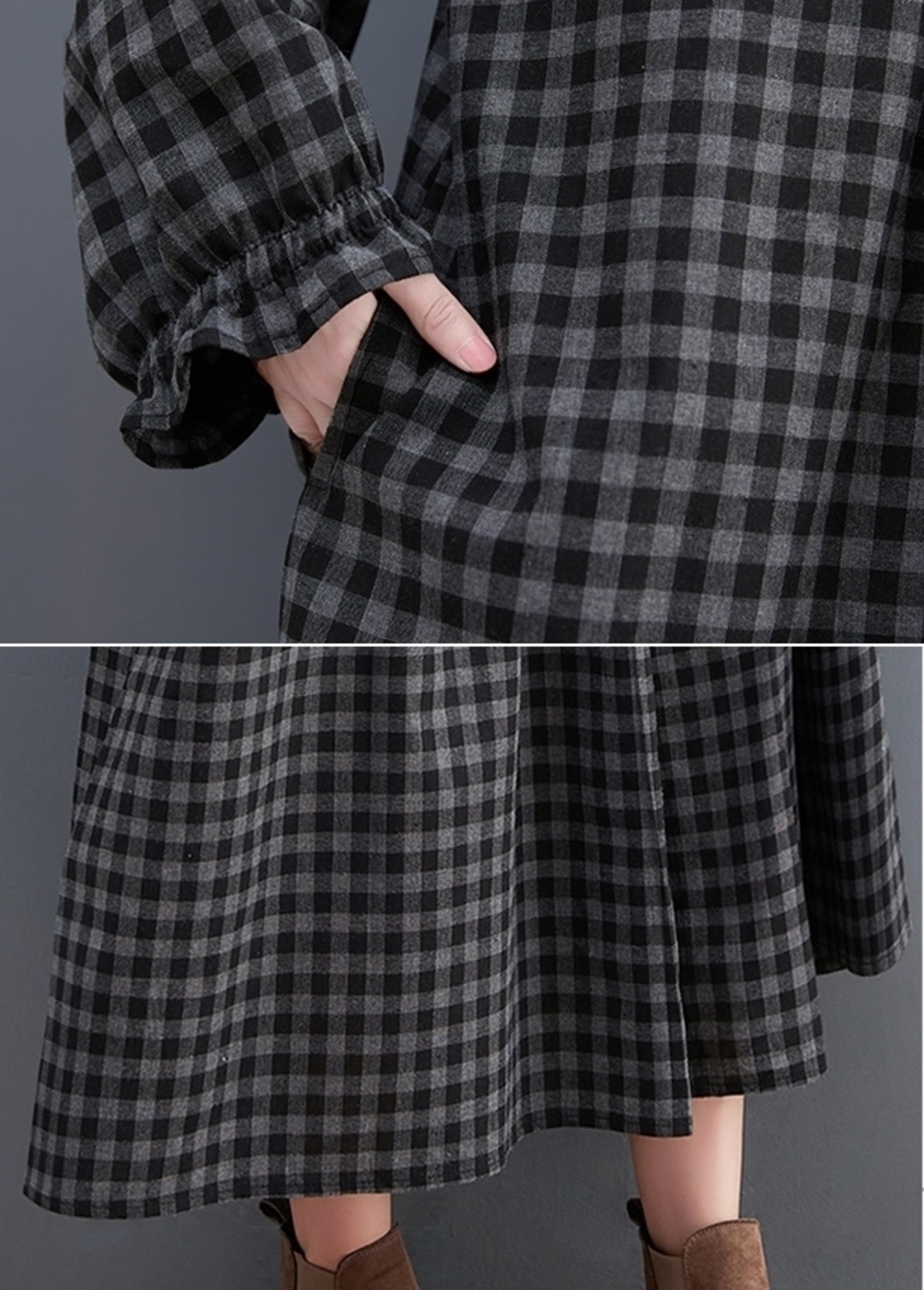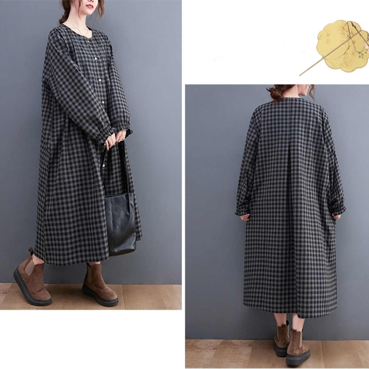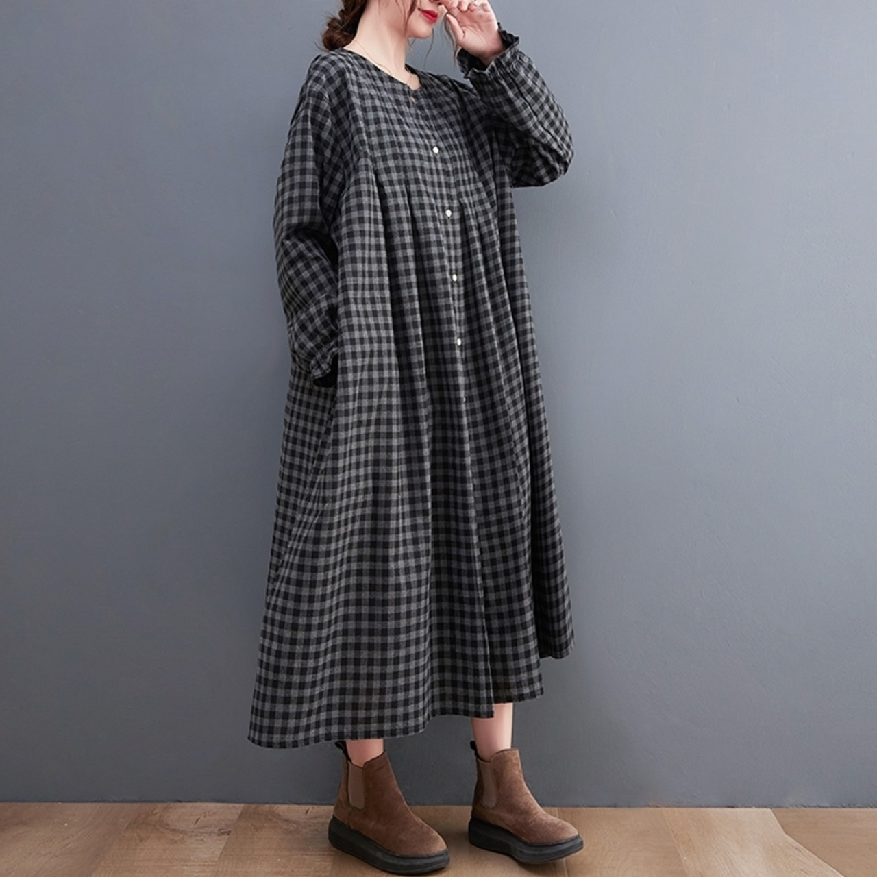 落ち着いたチェック柄で大人っぽい雰囲気のワンピース。