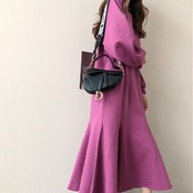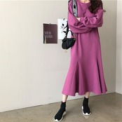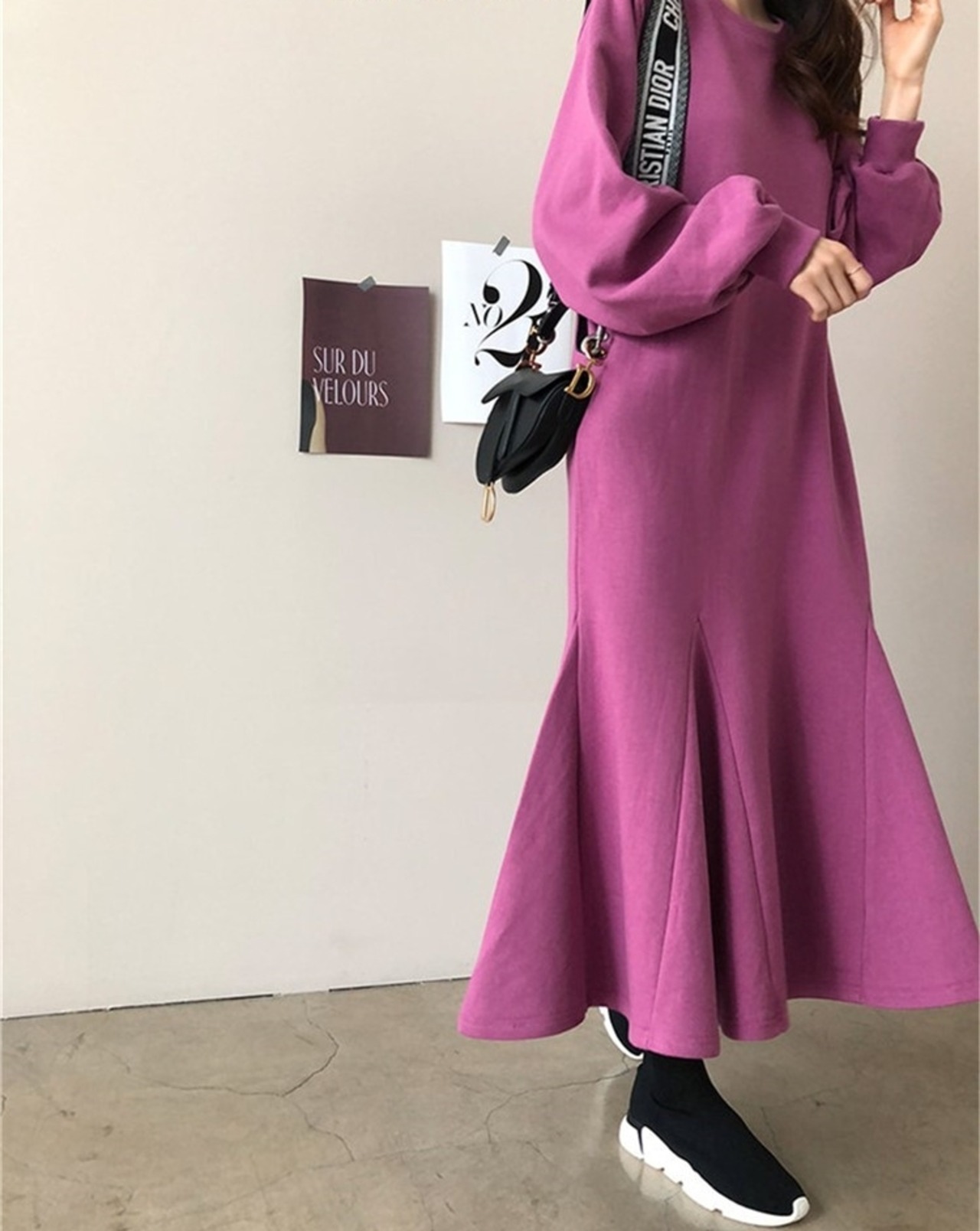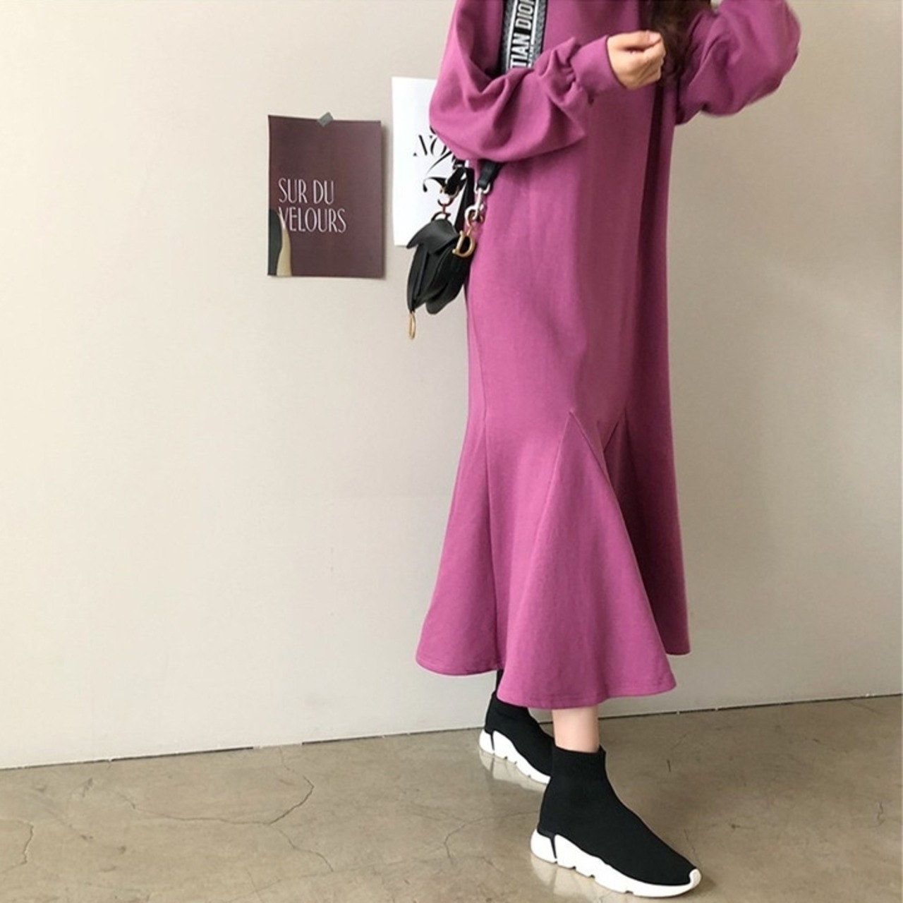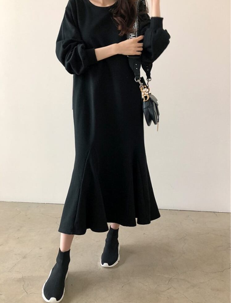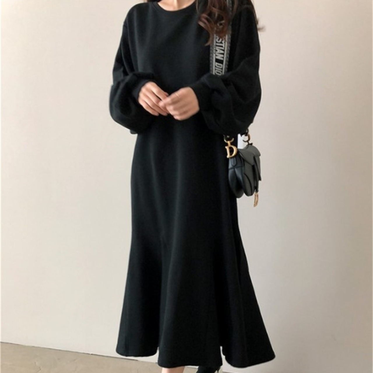 ワンピース マーメイドスタイル Tシャツワンピース ロングワンピース ラウンドネック 長袖 パフスリーブ ボリューム袖 ロング丈 ゆったり 大人女子 大人可愛い オシャレ おしゃれ お洒落 きれいめ カジュアル デイリー 普段使い お出かけ デート ランチ カフェ 旅行 リゾート 休日 春 秋 冬 20代 30代 40代 50代 レディース