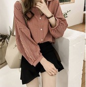 トップス シャツ ブラウス 袖あり 7分袖 七分袖 長袖 ボリューム袖 襟付き フレア セミフレア レース かわいい 大人可愛い レトロ キュート 柄 チェック柄 レオパード セブラ柄 シマ 春 夏 秋 オールシーズン シーズンレス 10代 20代 30代 学生 通学 デート お出かけ 女子会 休日 着回し 普段使い 重ね着 韓国 韓国系 オルチャン 楽ちん サイズ XXS M L XL 2XL 3XL 4XL 黒 ブラック 赤 レッド