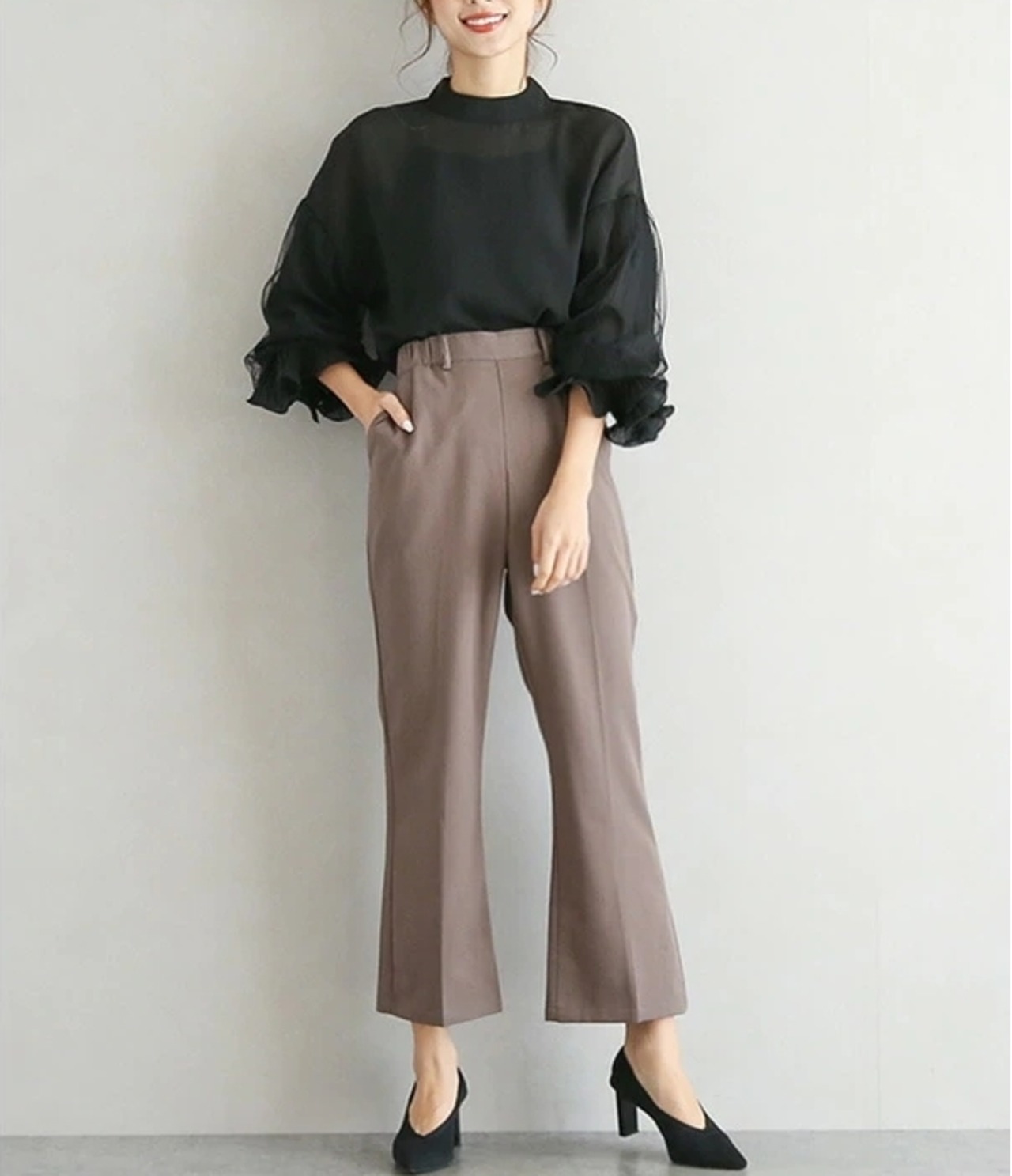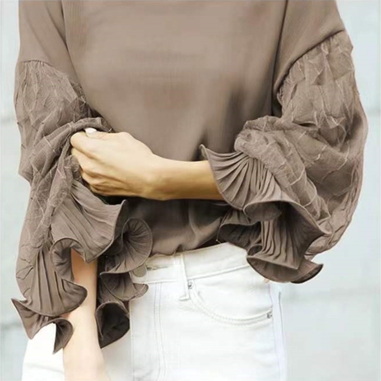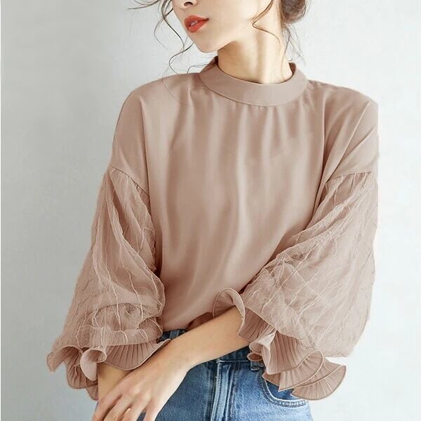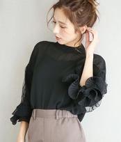 ふわりと広がるキャンディスリーブが華やかな長袖ブラウス。
