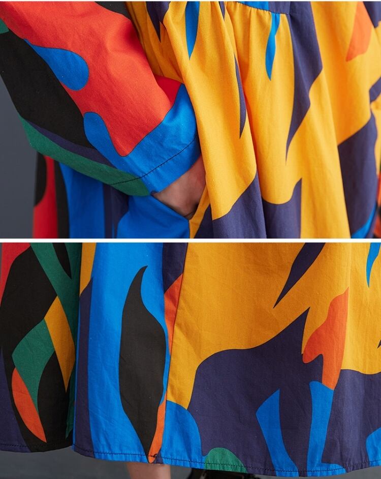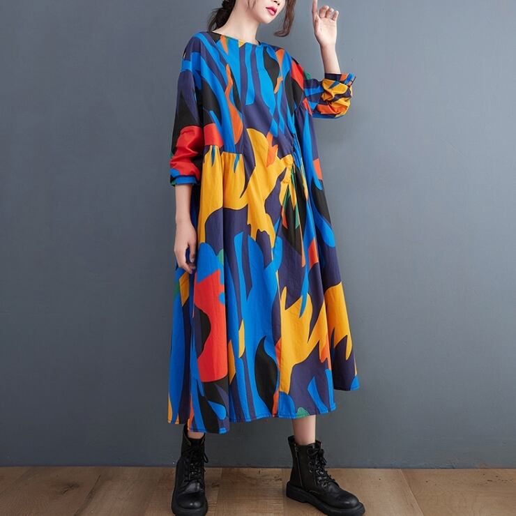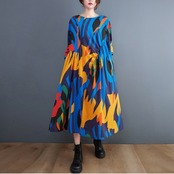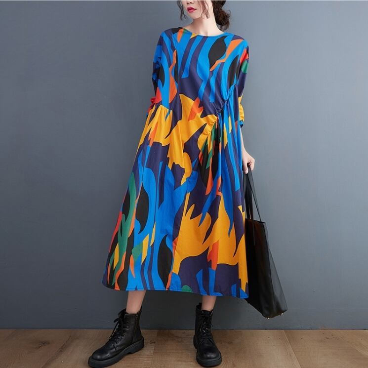 ワンピース フレアワンピース カラフル 配色 アート柄 プリント 切替デザイン ロングワンピース アシンメトリー ラウンドネック 七分袖 長袖 ゆったり 体型カバー ロング丈 フレア Aライン 華やか エレガント 大人女子 大人可愛い オシャレ おしゃれ お洒落 きれいめ カジュアル お出かけ デート デイリー 普段使い ランチ カフェ 女子会 パーティー イベント リゾート 休日 春 秋 20代 30代 40代 50代 レディース