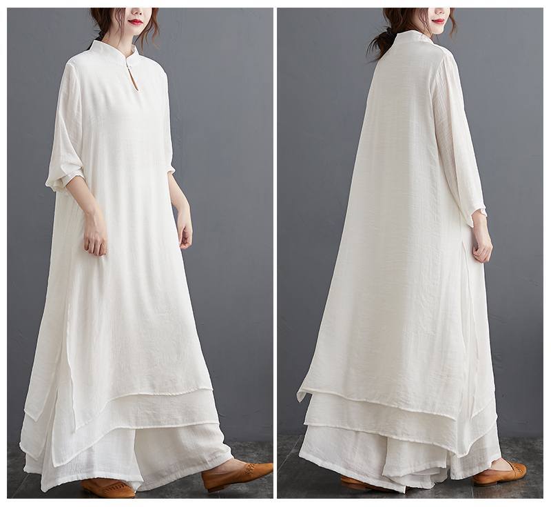 セットアップ トップス ボトムス パンツ ワンピース 白トップス ワイドパンツ ガウチョパンツ イージーパンツ スカンツ スカーチョ ロング ロング丈 マキシ マキシ丈 9分丈 袖あり クルーネック 襟付き スタンドカラー 立ち襟 フレア ワイド Aライン ウエストゴム かわいい 大人可愛い きれいめ シンプル カジュアル 大人 上品 おしゃれ お洒落 アジアン エスニック 大人女子 こなれ感 ラフ ボーイッシュ キュート ルーズ 個性的 クール エレガント フェミニン 無地 休日 ゆったり ゆる