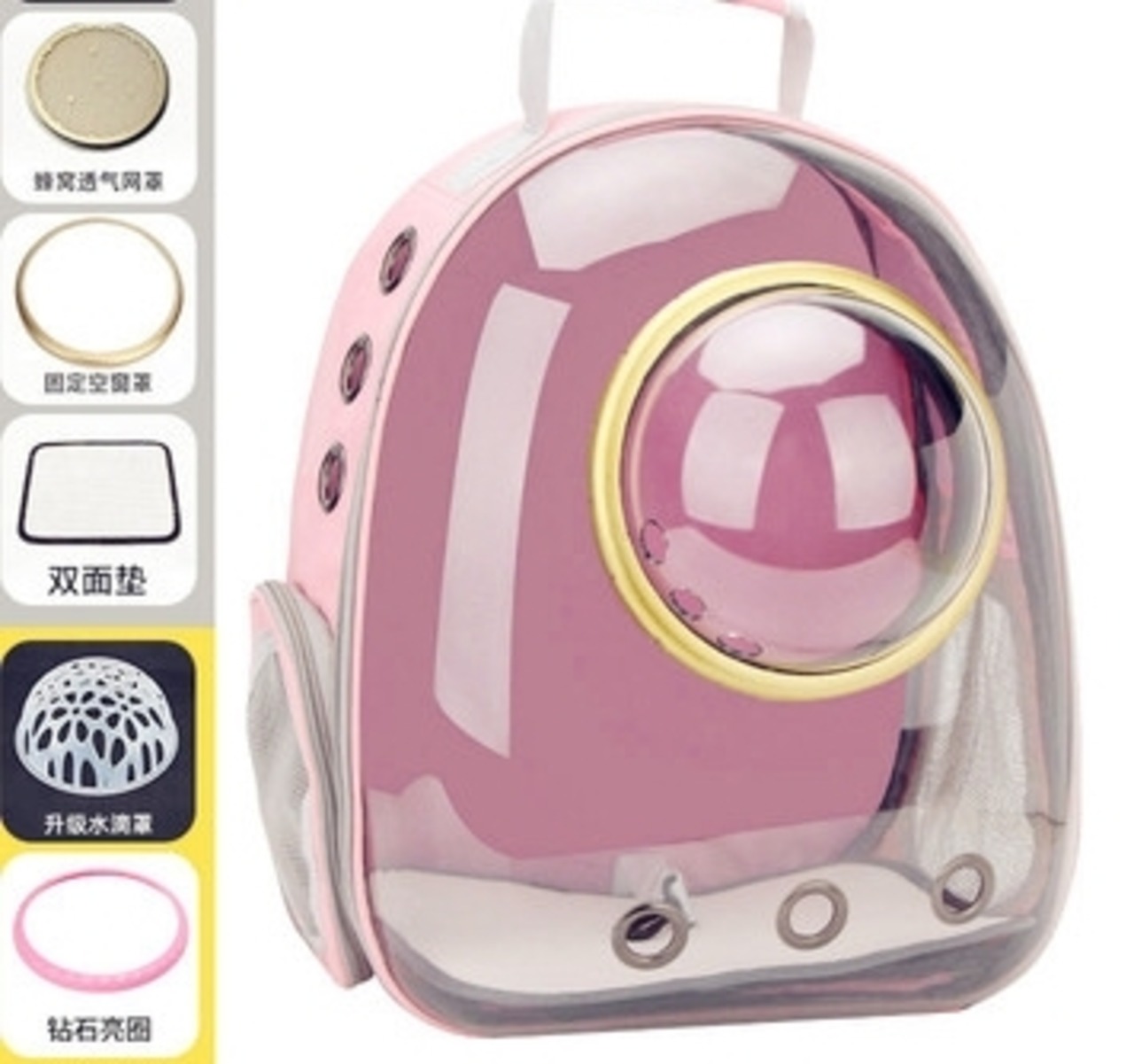 【ペット】猫 うさぎ リュック 色ピンク 呼吸が出来る 姿が見える キャットバック アウトショルダーバッグ カプセルペットパック 猫バックパック 猫外出バッグ ポータブルスペースバッグ クリアバッグ ピンク色
