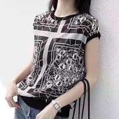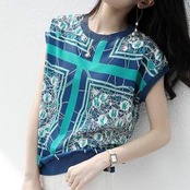大人っぽいレトロプリントが素敵なシフォンTシャツです。