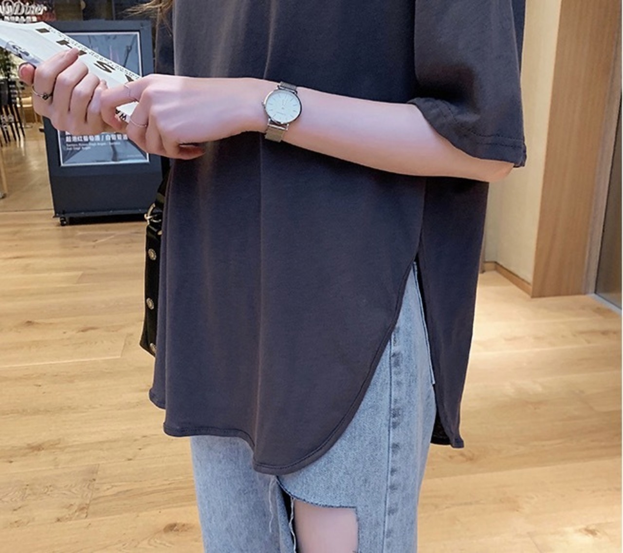 トップス Tシャツ カットソー 白シャツ 白トップス ビッグT ロング ロング丈 袖あり 半袖 5分袖 五分袖 ラウンドネック クルーネック 襟なし ワイド サイドスリット 綿 コットン 大人可愛い きれいめ シンプル カジュアル 大人 おしゃれ お洒落 かっこいい 大人可愛い 大人女子 こなれ感 メンズライク マニッシュ ボーイッシュ モード系 モダン 無地 プリント 春 夏 秋 オールシーズン 10代 20代 30代 レディース 女性用 ママ OL 学生 通学 女子会 休日 着回し 普段使い