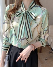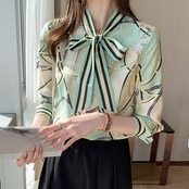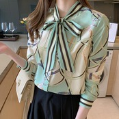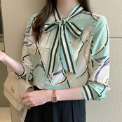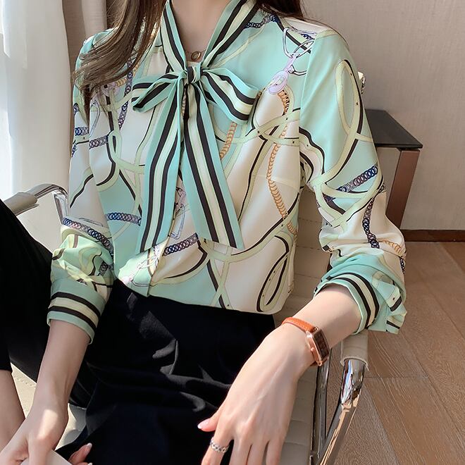 ブラウス 長袖 ボウタイ シフォン ストライプ チェーン柄 大人可愛い きれいめ シンプル カジュアル 大人 上品 おしゃれ かっこいい レトロ 大人女子 こなれ感 個性的 フェミニン エレガント 主役級 存在感 とろみ感 春 夏 秋 レディース オフィス ビジネス OL 通勤 学生 通学 デート お出かけ リモート会議 レストラン 着回し 普段使い 重ね着 華奢見え 美デコルテ デイリー スタイルアップ コーデ モテ 日常使い 休日