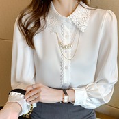 シャツ ブラウス レースカラー 長袖 レース シフォン フリル 無地 アクセサリー かわいい 大人可愛い きれいめ シンプル 大人 おしゃれ 大人カジュアル 大人女子 ラブリー キュート ガーリー フェミニン 存在感 とろみ感 ナチュラル ベーシック 春 夏 秋 レディース オフィス ビジネス OL 通勤 学生 通学 デート お出かけ 女子会 お泊まり 旅行 リモート会議 ホテル レストラン 着回し 普段使い 重ね着 デイリー コーデ モテ きちんと感 日常使い 休日